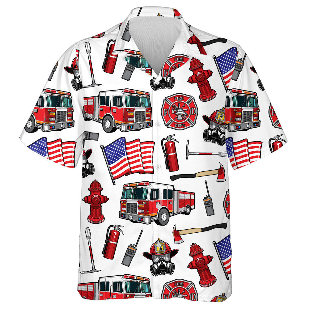 Firefighting Firefighter Department American Flag Elements Hawaiian Shirt, Hawaiian Shirt Gift, Christmas Gift