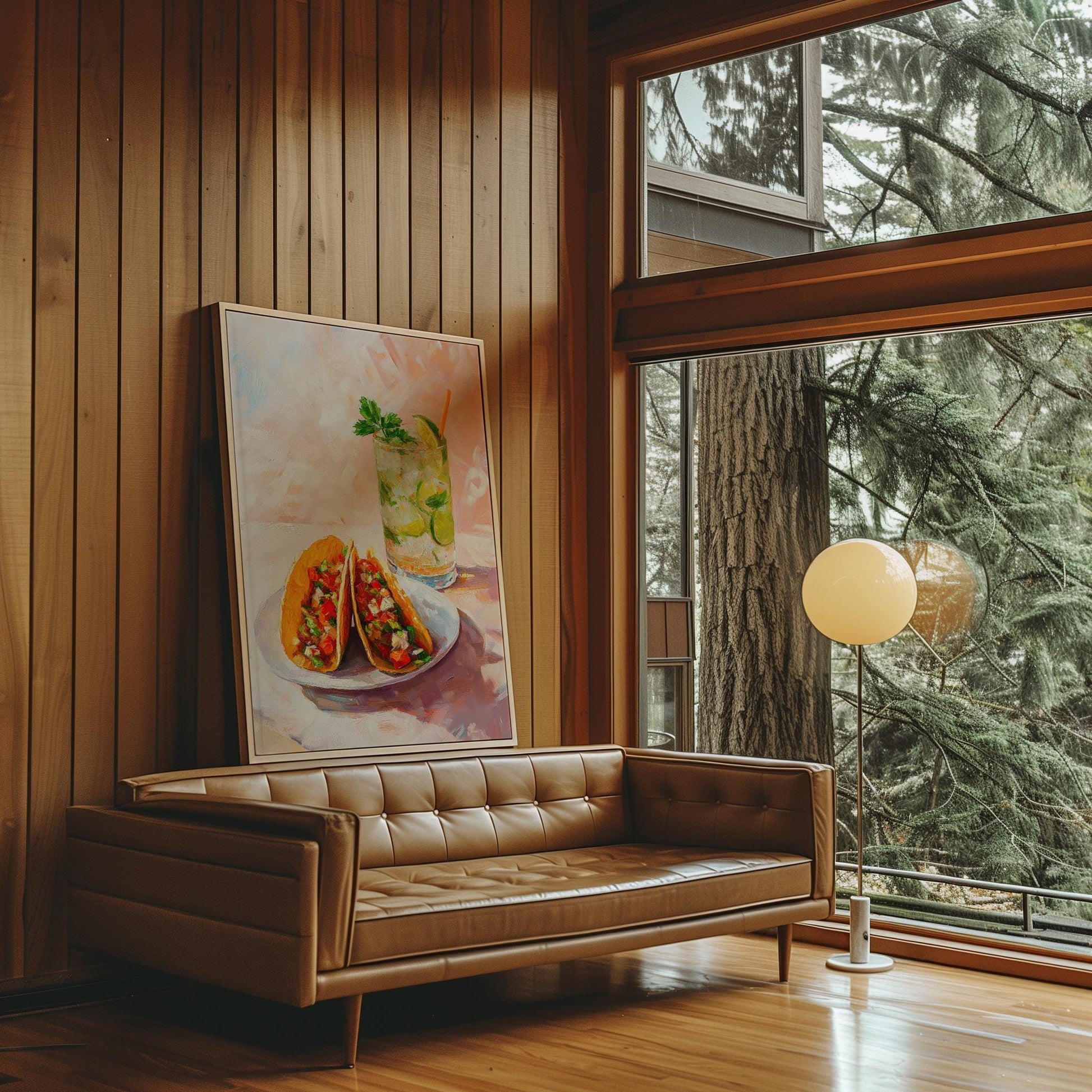 Fish Tacos and Mojito Art Print: Retro Bar Cart Decor