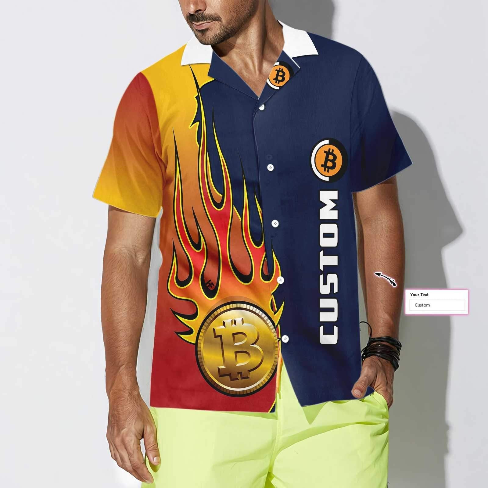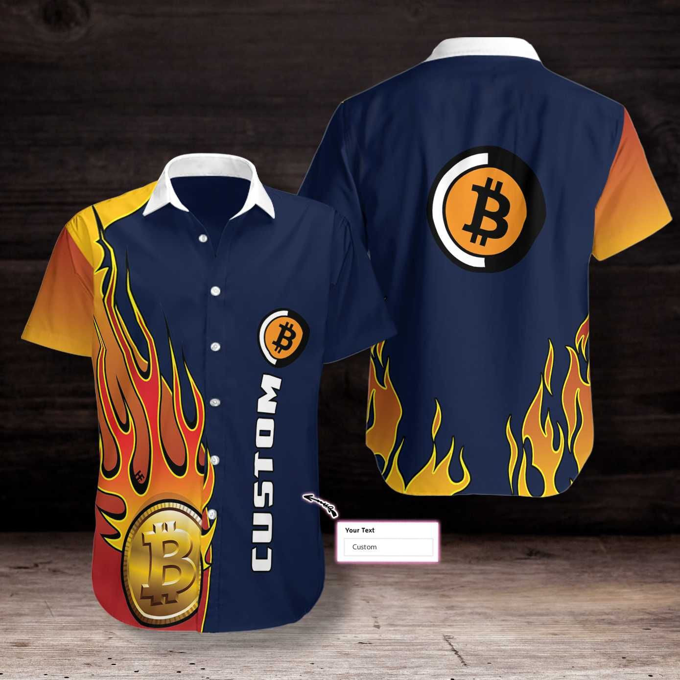 Flame Bitcoin Logo Custom Name Hawaiian Shirt,Hawaiian Shirt Gift, Christmas Gift