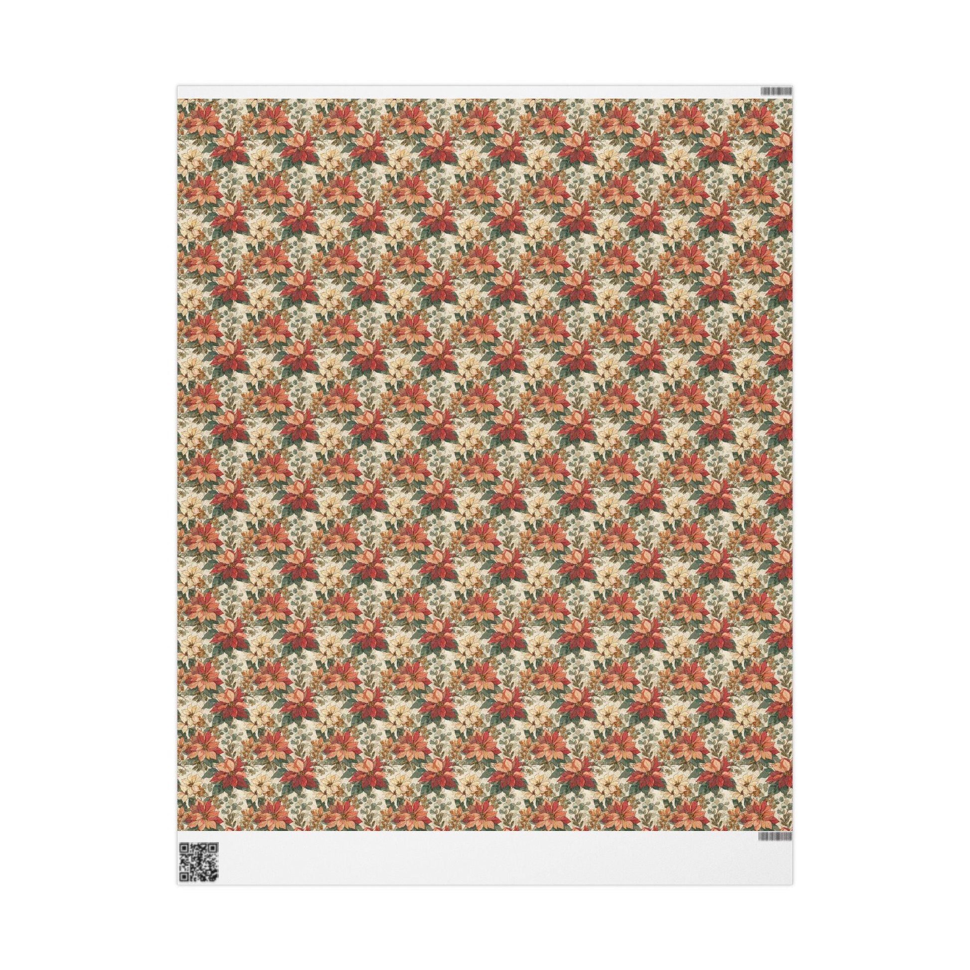 Floral Christmas Wrapping Paper Roll, Watercolor Poinsettia Design for Winter Holiday Gift Wrapping #4