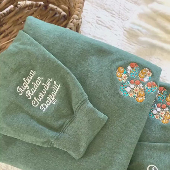Floral Embroidered Fall Sweatshirt Custom Autumn Crewneck w Pet Name on Sleeve Fall Sweatshirt for Dog Lover Fall Fur MAMA Sweatshirt