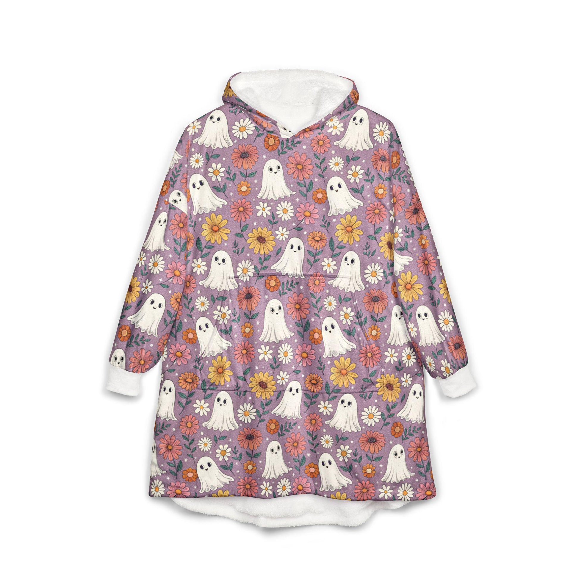 Floral Ghost Hooded Blanket: Cozy Unisex Polyester Fleece