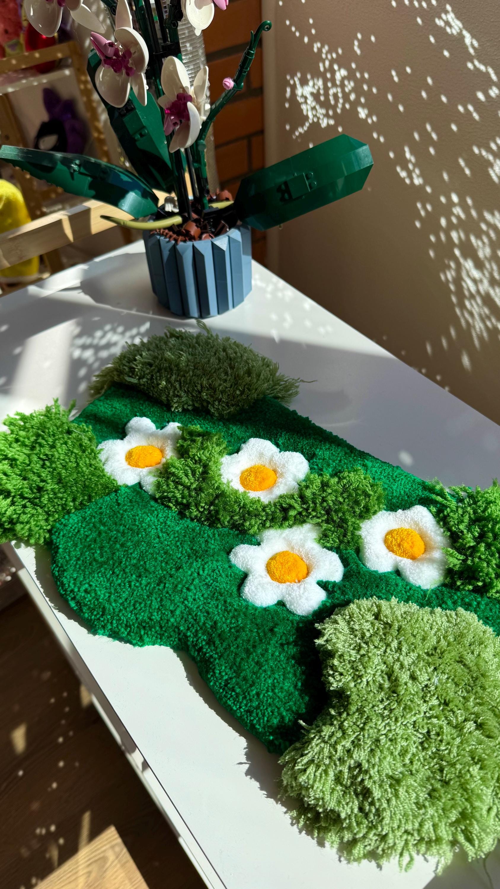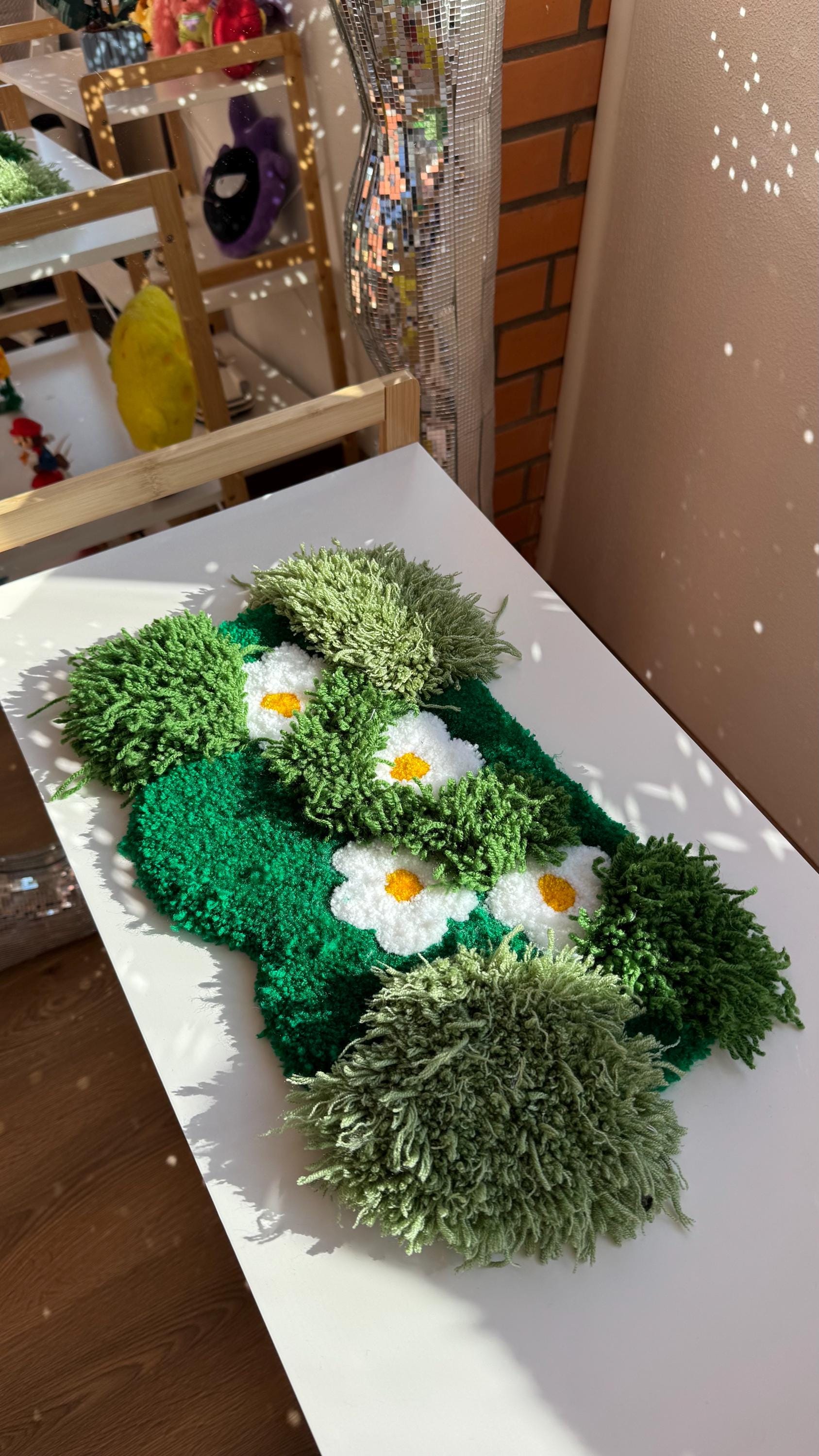 Flower Tufted Rug – Handmade Tufted Coaster Mat, Cute Desk Decor, Fluffy Anime Carpet, Funny Kawaii Gift for Gamers or Work Setup
