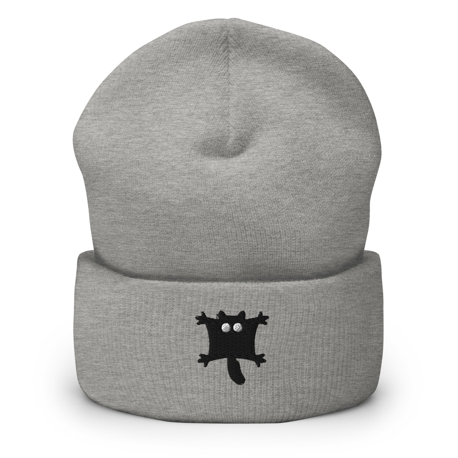Flying Squirrel Embroidered Beanie, Handmade Cuffed Knit Unisex Slouchy Adult Winter Hat Cap Gift