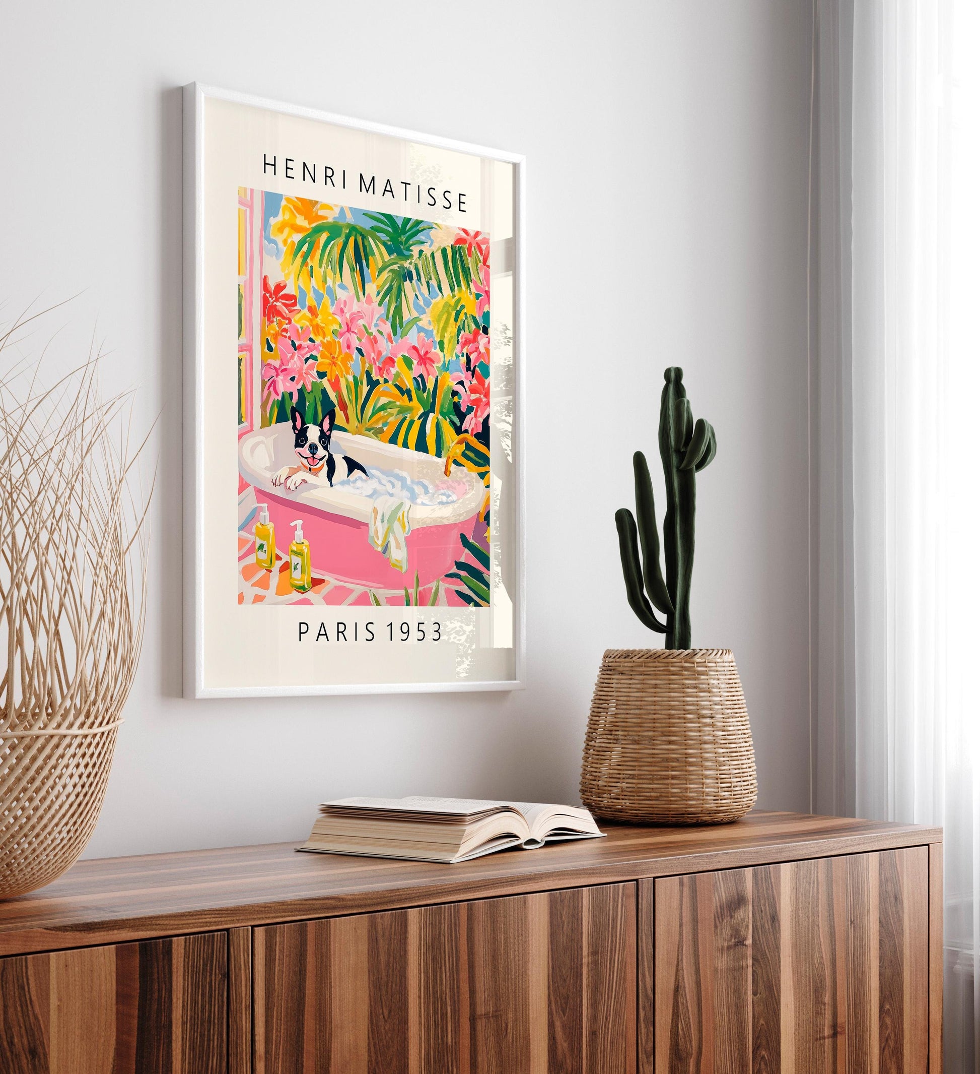 French Bulldog Matisse Print: Funny Bathroom Tropical Art