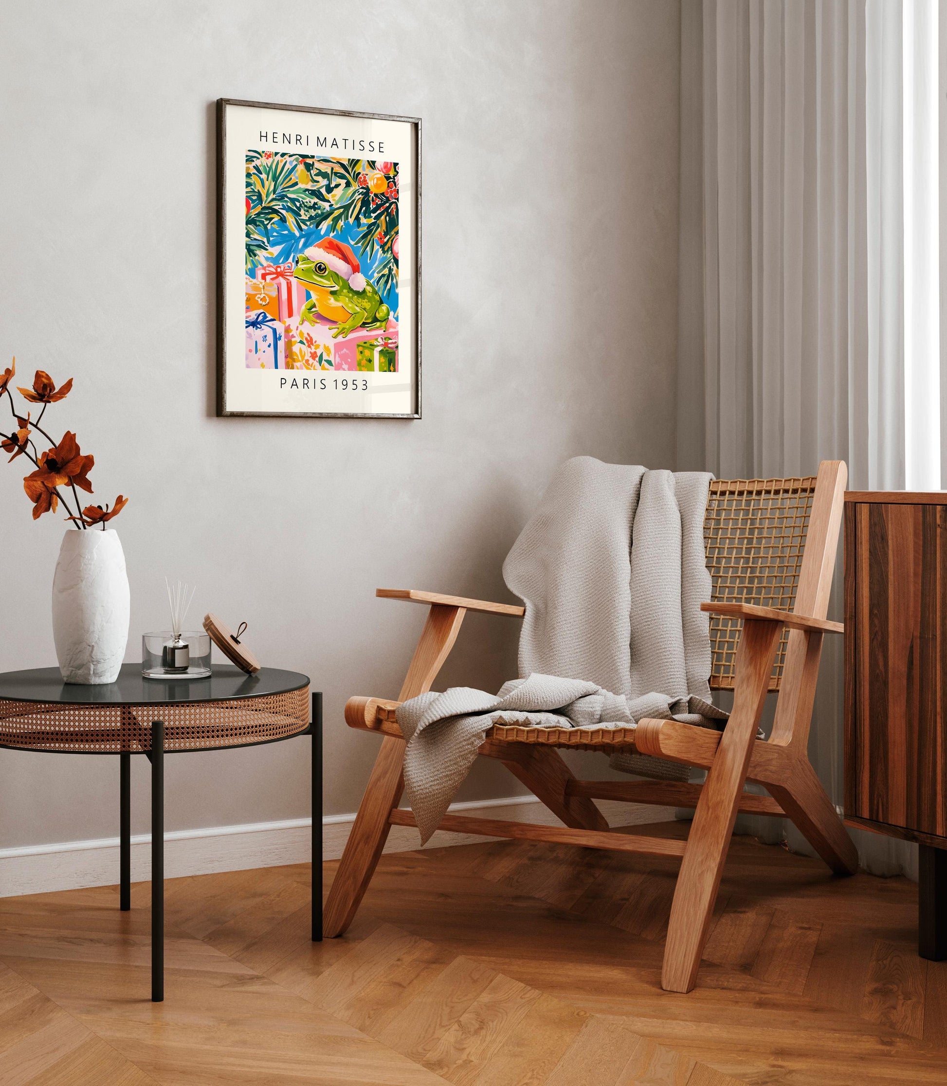 Frog in Santa Hat Art Print: Funny Matisse Style Christmas Decor