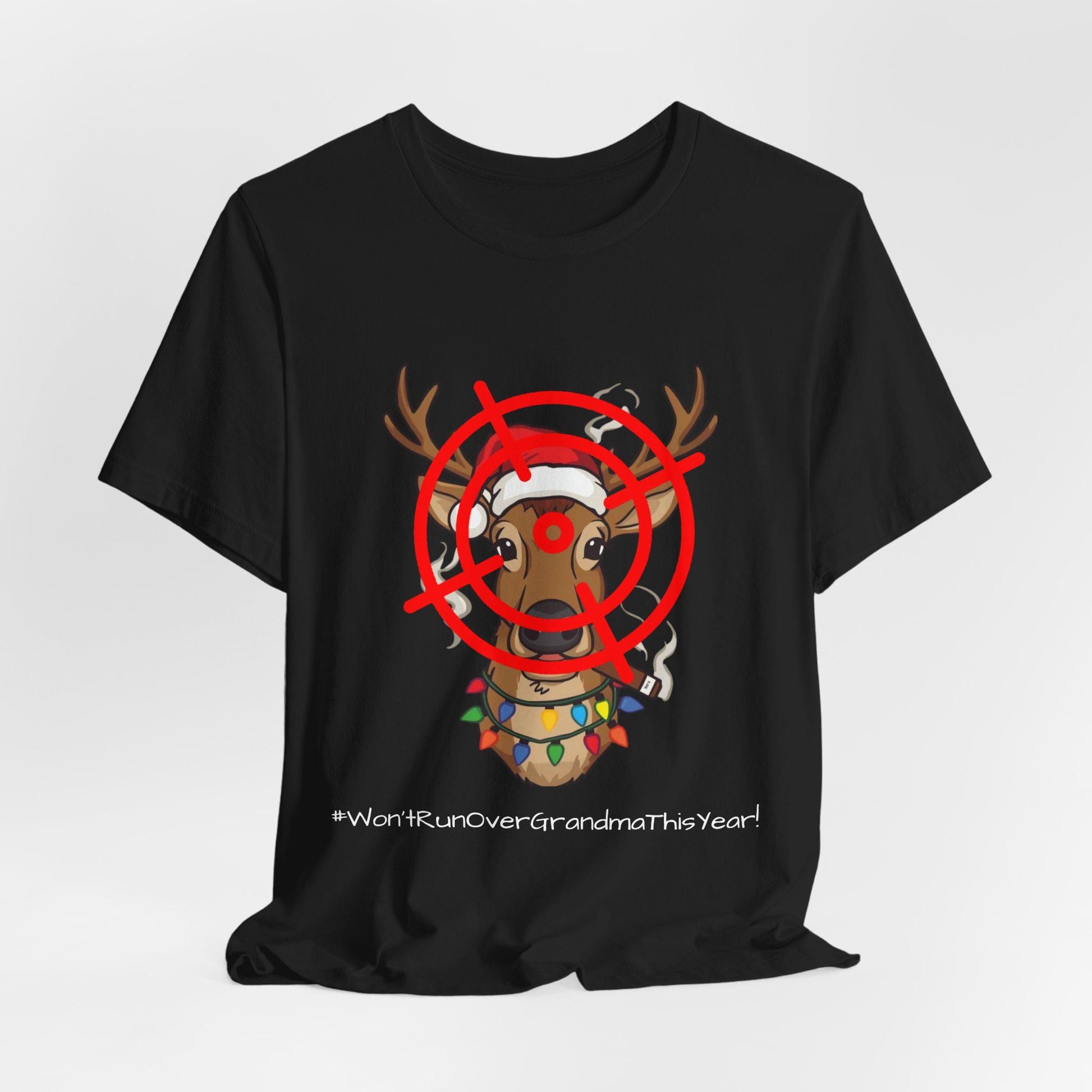 Funny Christmas Tee for Grandma, Holiday Gift, Unisex Short Sleeve Shirt, Cute Reindeer Design, Family Celebration Apparel