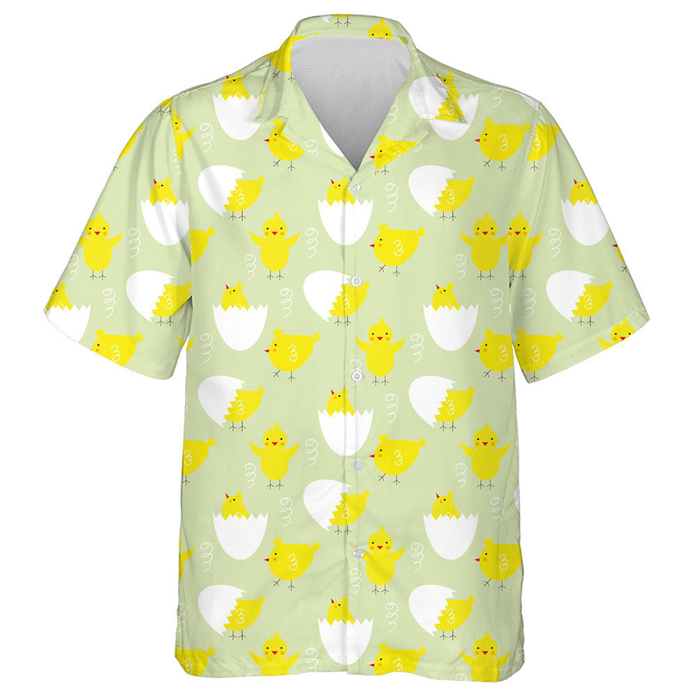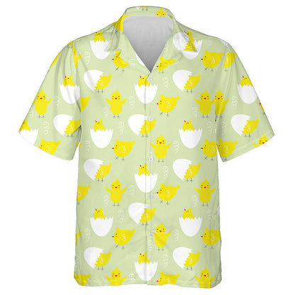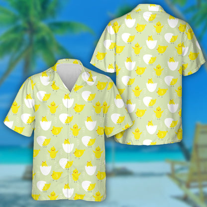 Funny Cute Yellow Chicken With Half Egg Shell Hawaiian Shirt, Hawaiian Shirt Gift, Christmas Gift
