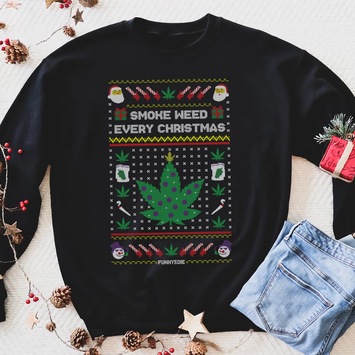Funny or Die Smoke Weed Every Christmas - Standard Crew Neck Sweatshirt funny sweatshirt gifts christmas ugly sweater for men and women