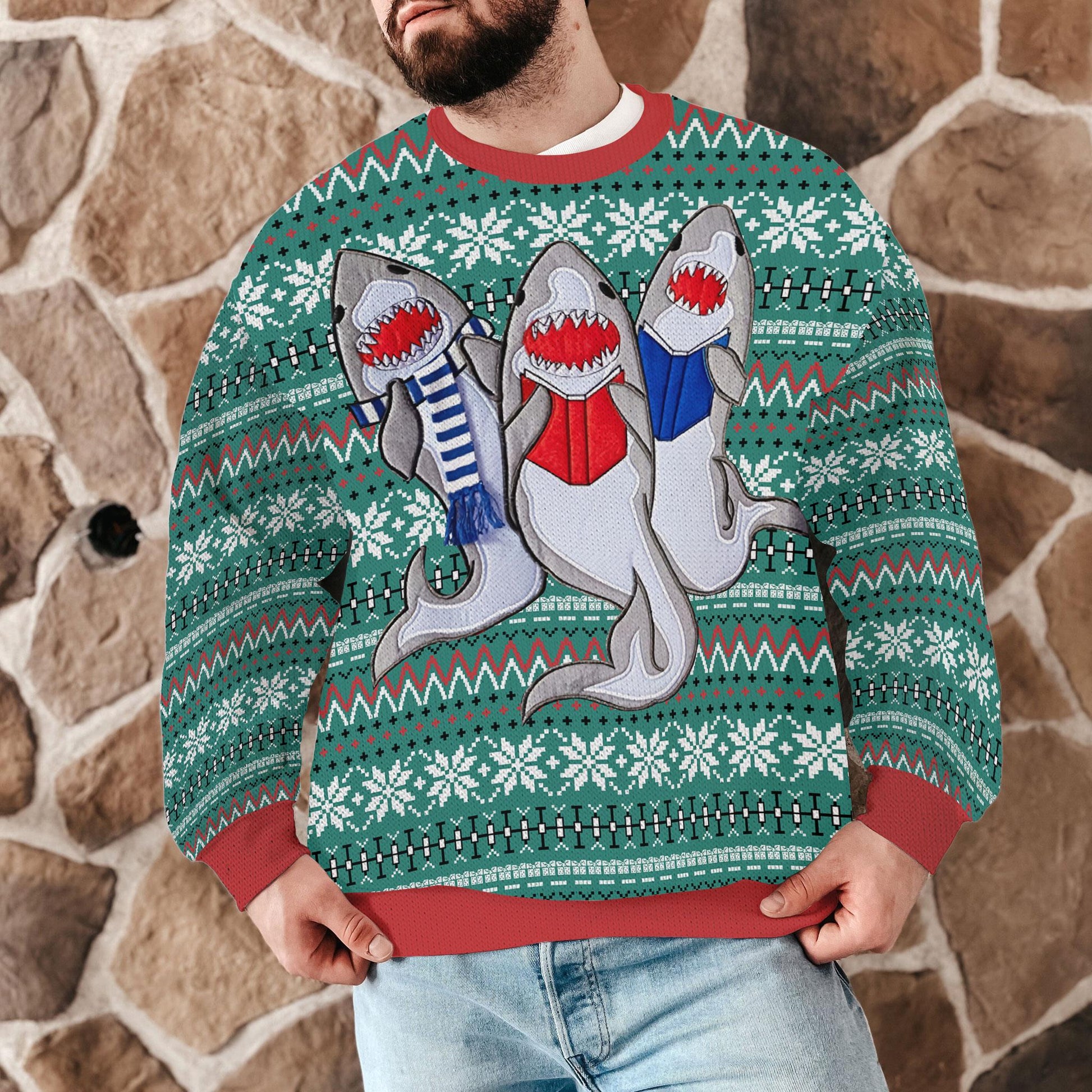 Funny Shark Christmas Ugly Sweater, Shark Family Holiday Sweatshirt, Cute Winter Christmas Jumper Gift for Men Women Kids