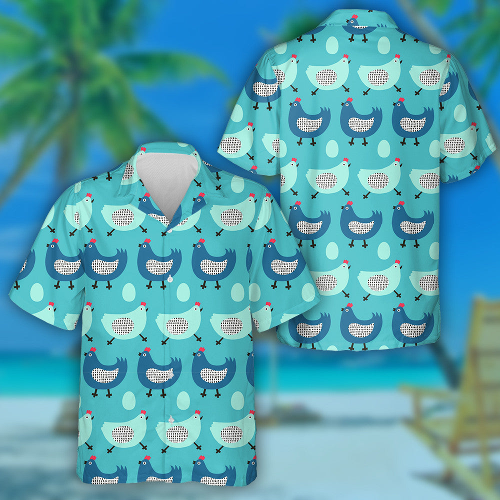 Funt Blue And Mint Chicken With Egg Hawaiian Shirt, Hawaiian Shirt Gift, Christmas Gift