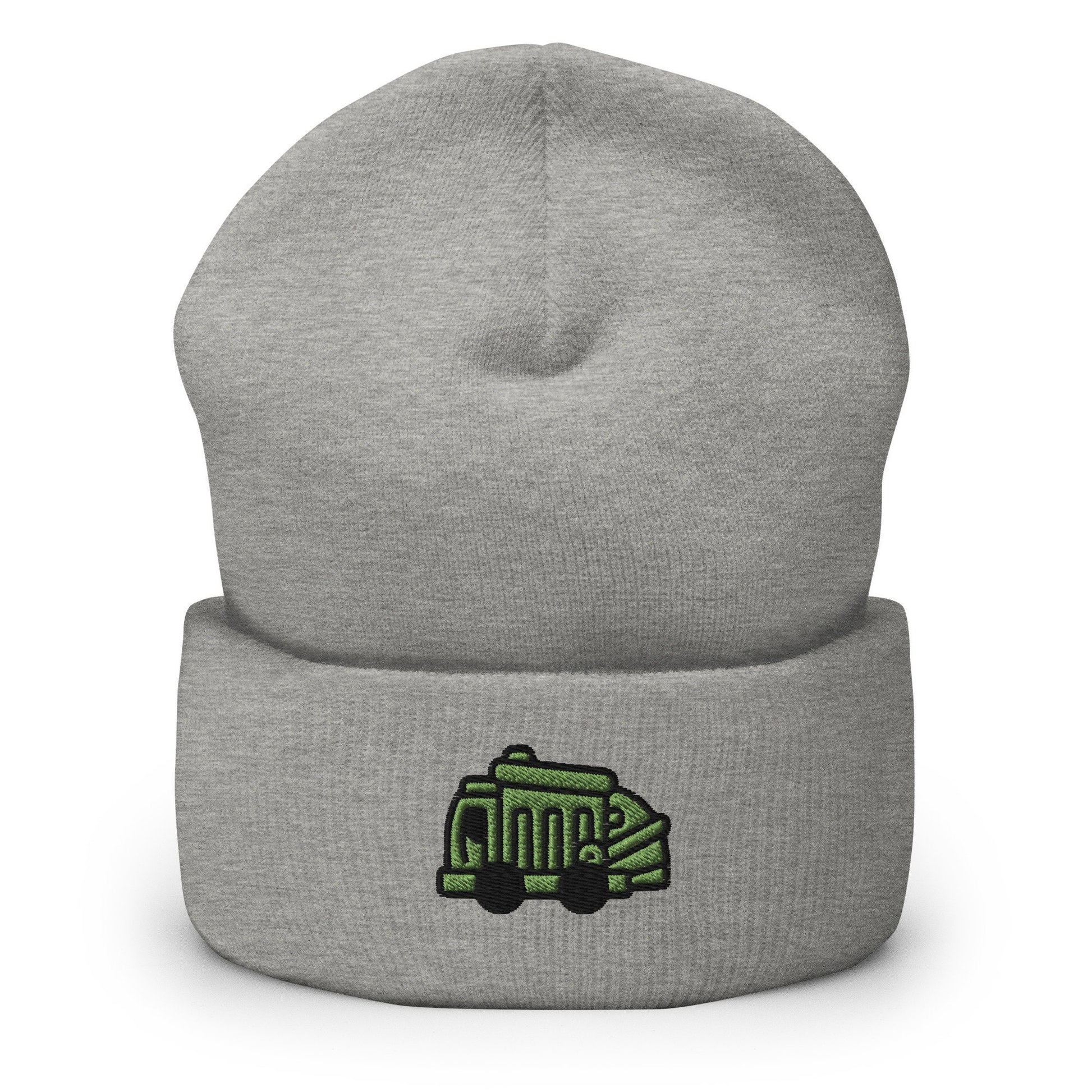 Garbage Truck Embroidered Beanie, Handmade Cuffed Knit Unisex Slouchy Adult Winter Hat Cap Gift
