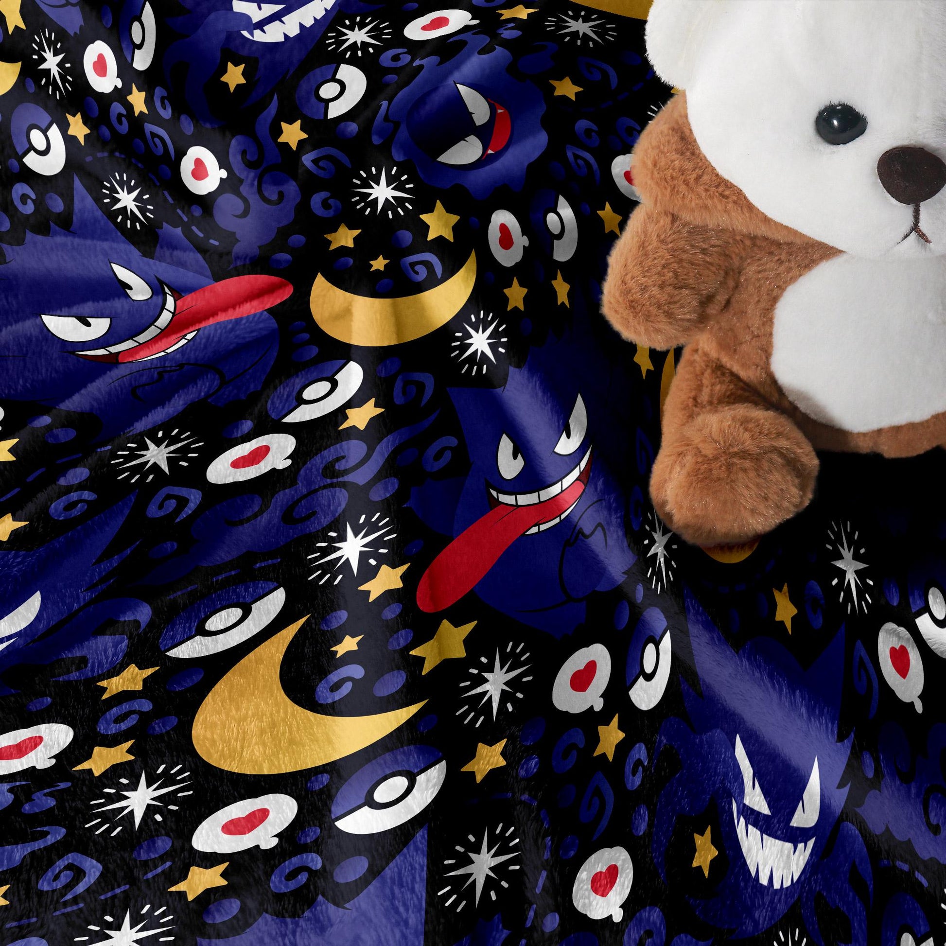 Gengar Fleece Blanket, Cute Purple Moon Throw Blanket, Tropical Home Decor Blanket, Gengar Blanket Gifts
