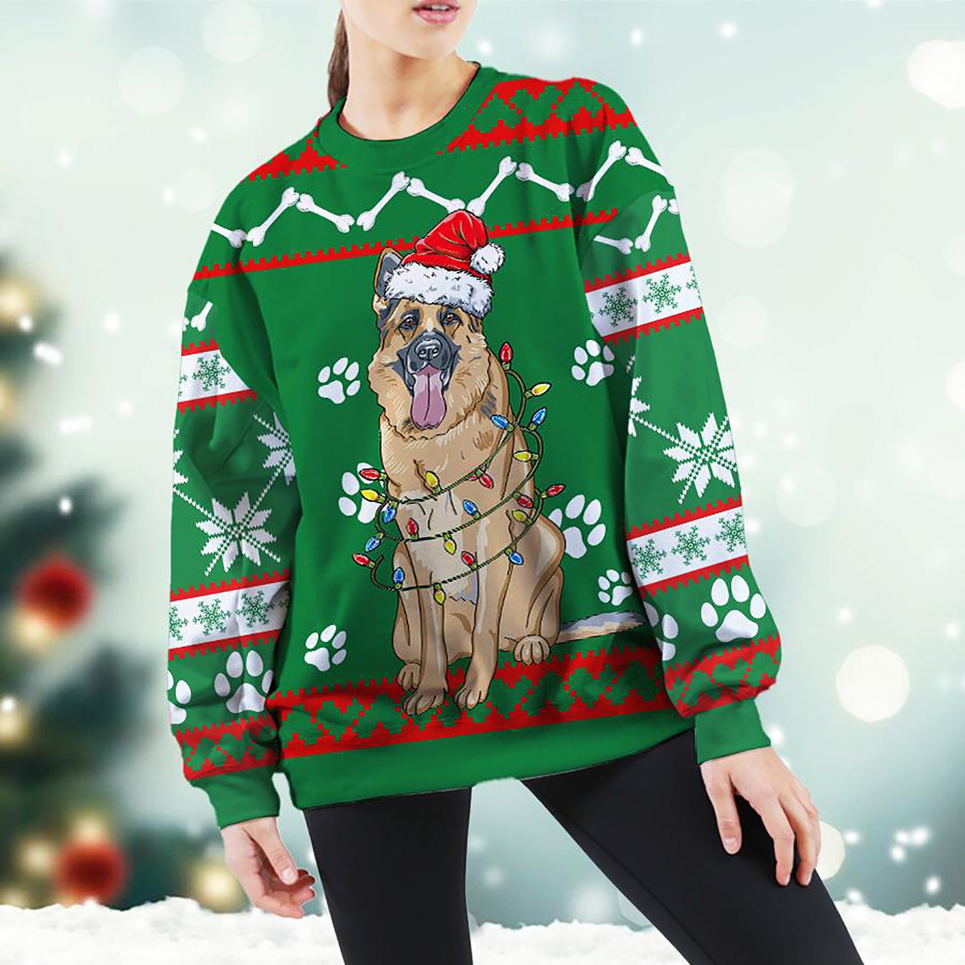 German Shepherd Green Christmas Sweatshirt, Christmas Ugly Sweater, Christmas Gift, Gift Christmas 2024