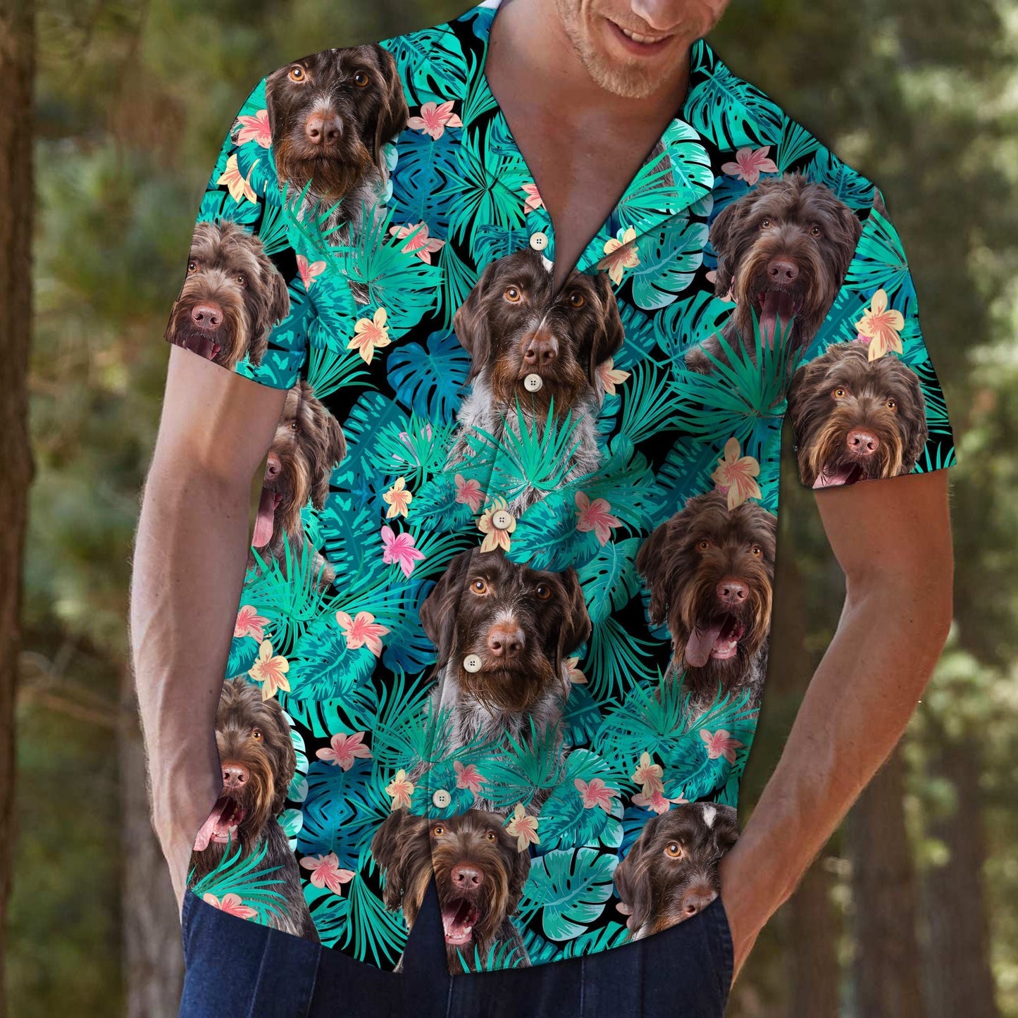 German Wirehaired Pointer In Green Tropical Leaves And Flowers Hawaiian Shirt, Hawaiian Shirt Gift, Christmas Gift
