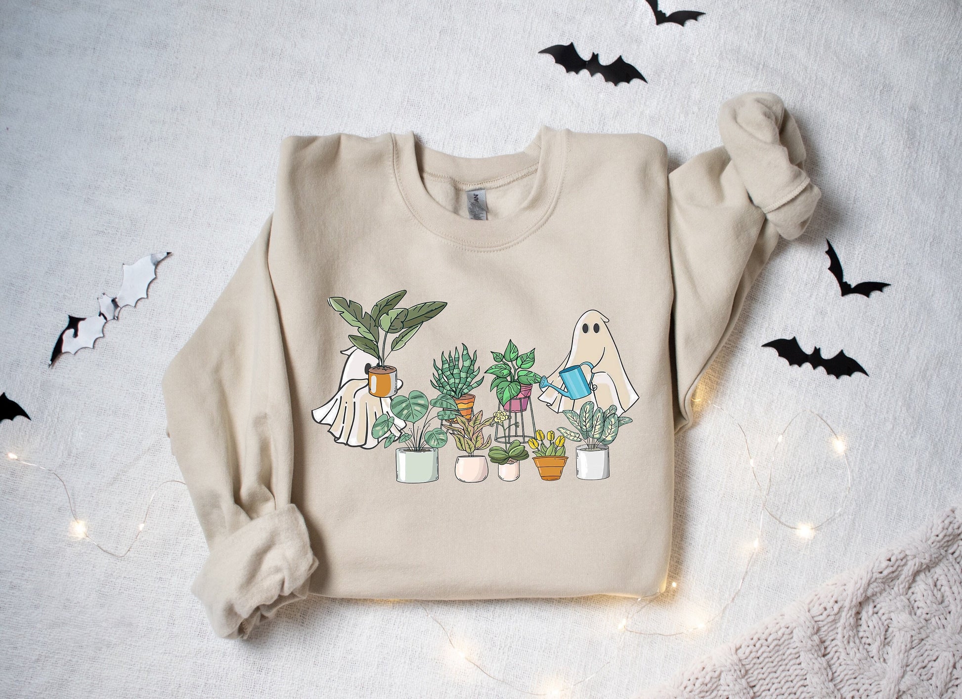 Ghost Plant Lady Sweatshirt, Ghost Plant Shirt, Halloween Plants Sweatshirt, Halloween Ghost Sweatshirt, Halloween Gift for Plant Lovers