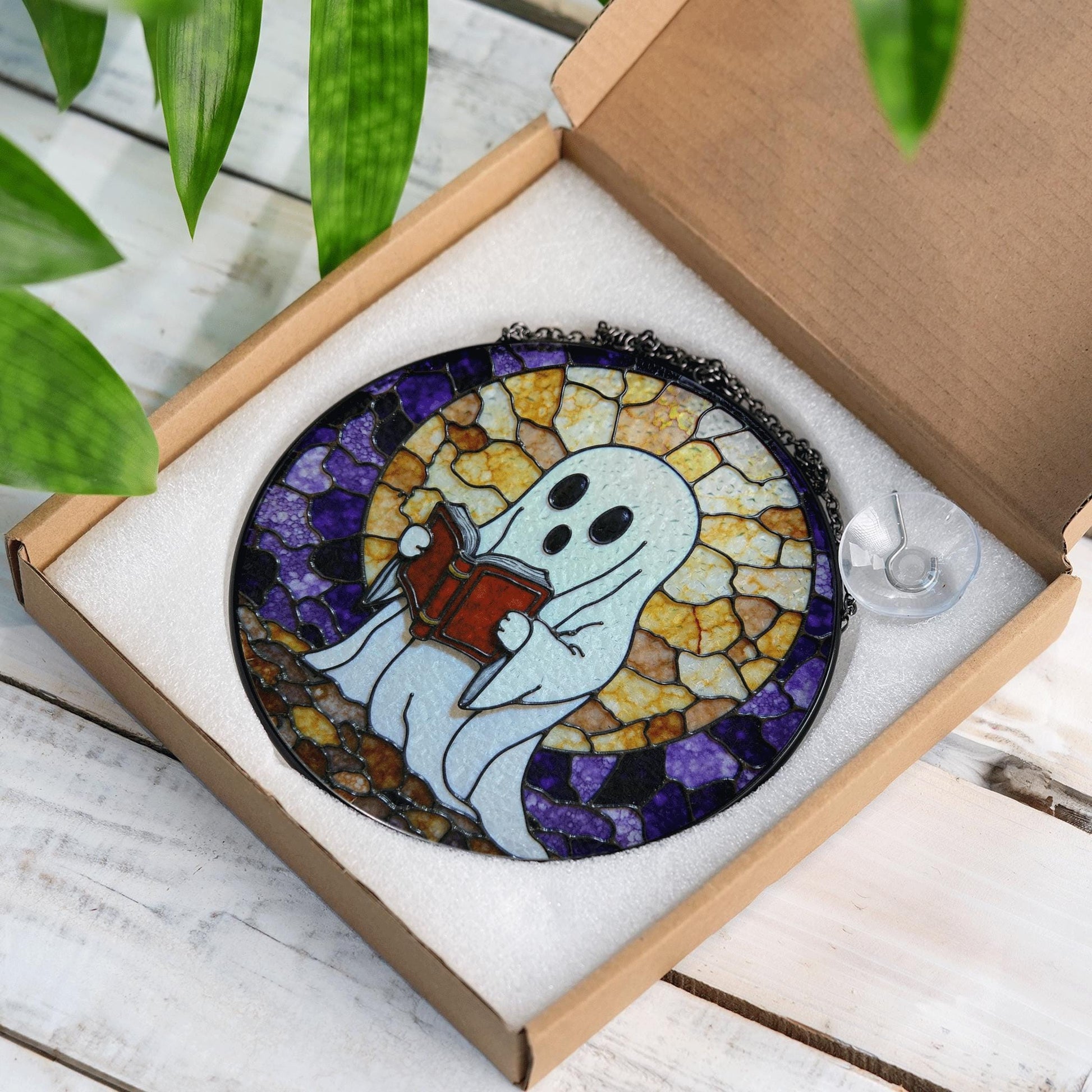 Ghost Reading Stained Glass Suncatcher Window Hanging Halloween Gift