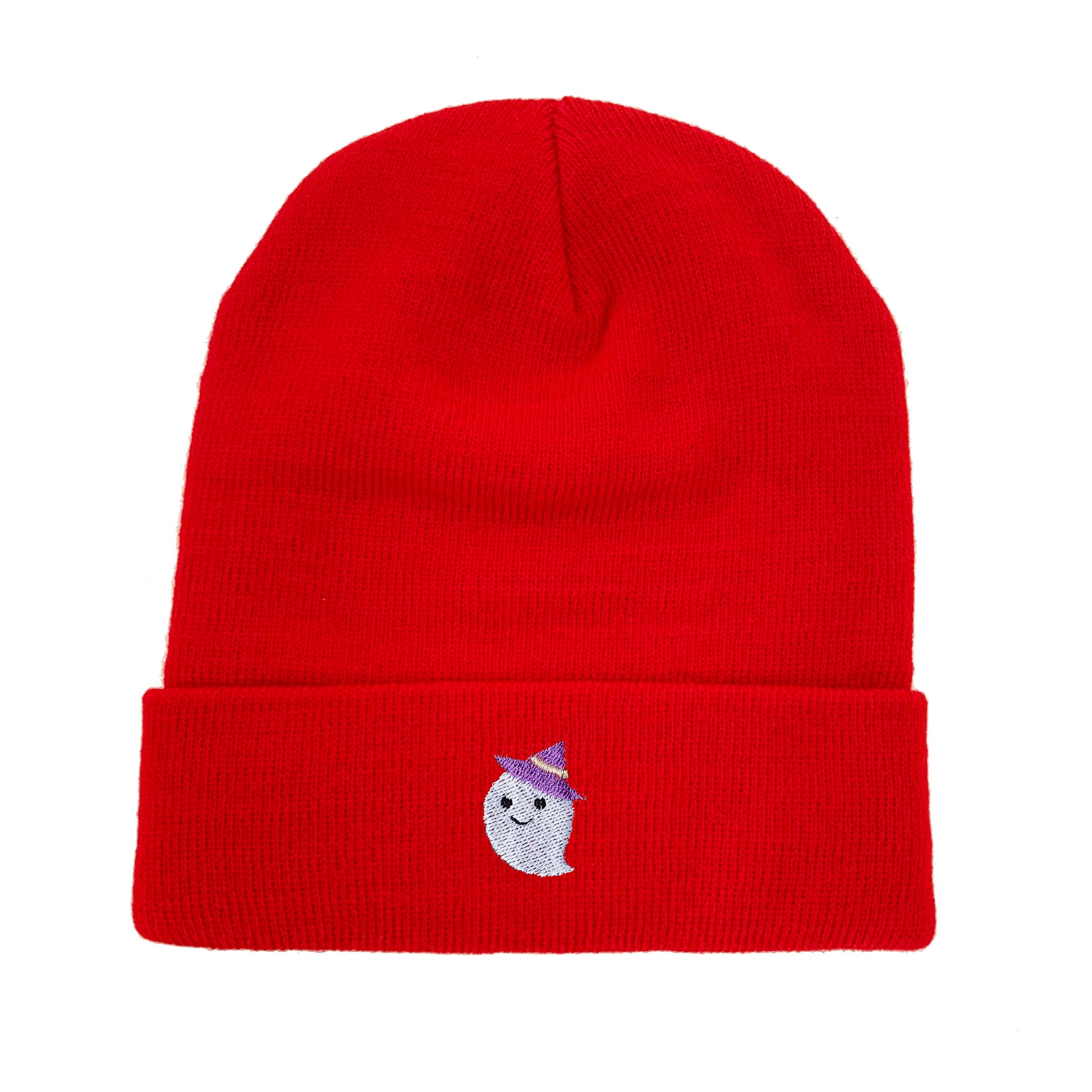 Ghost with Witch Hat Halloween Embroidered Beanie Halloween Winter Hat