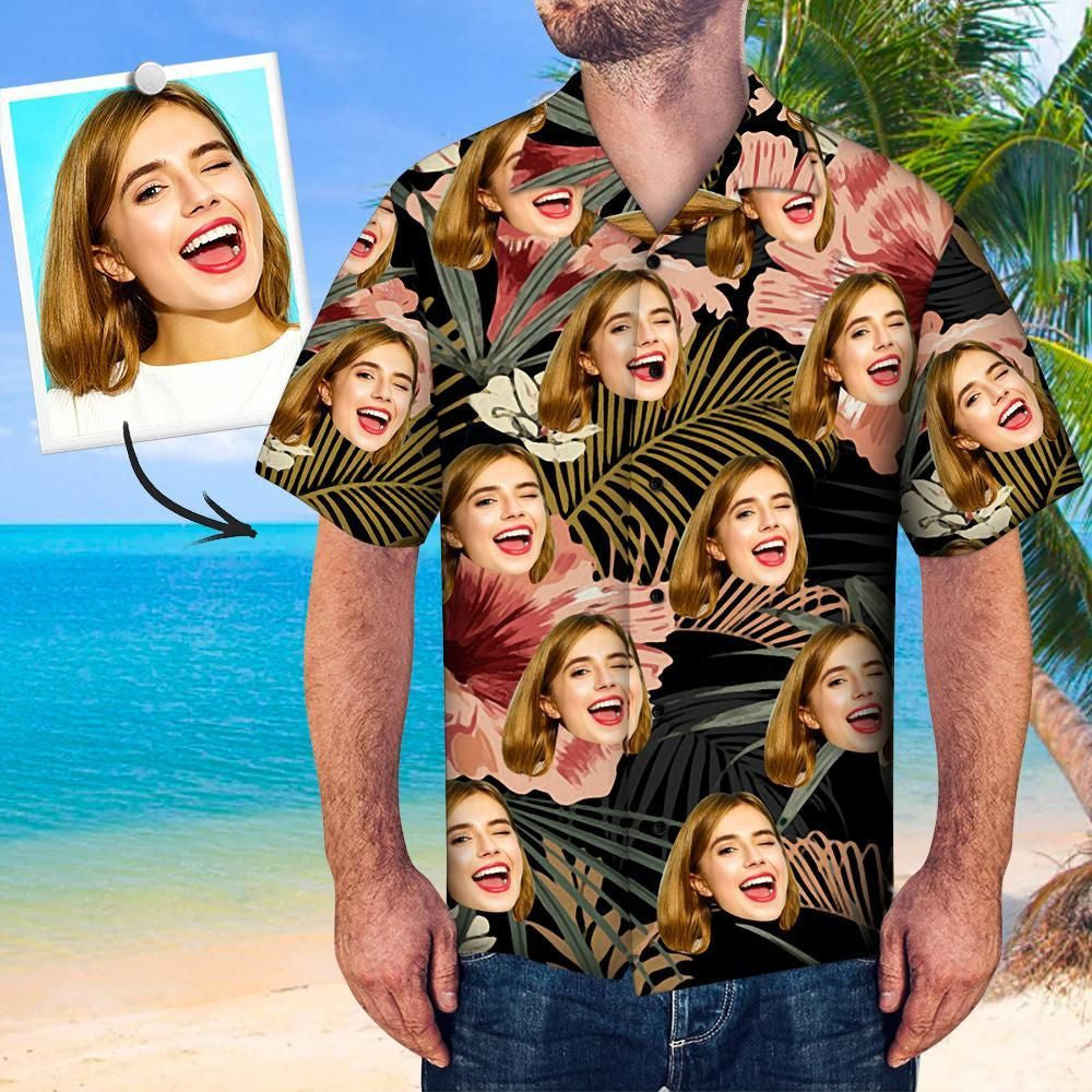 Giant Hibiscus And Gold Leaves Custom Photo Hawaiian Shirt, Hawaiian Shirt Gift, Christmas Gift