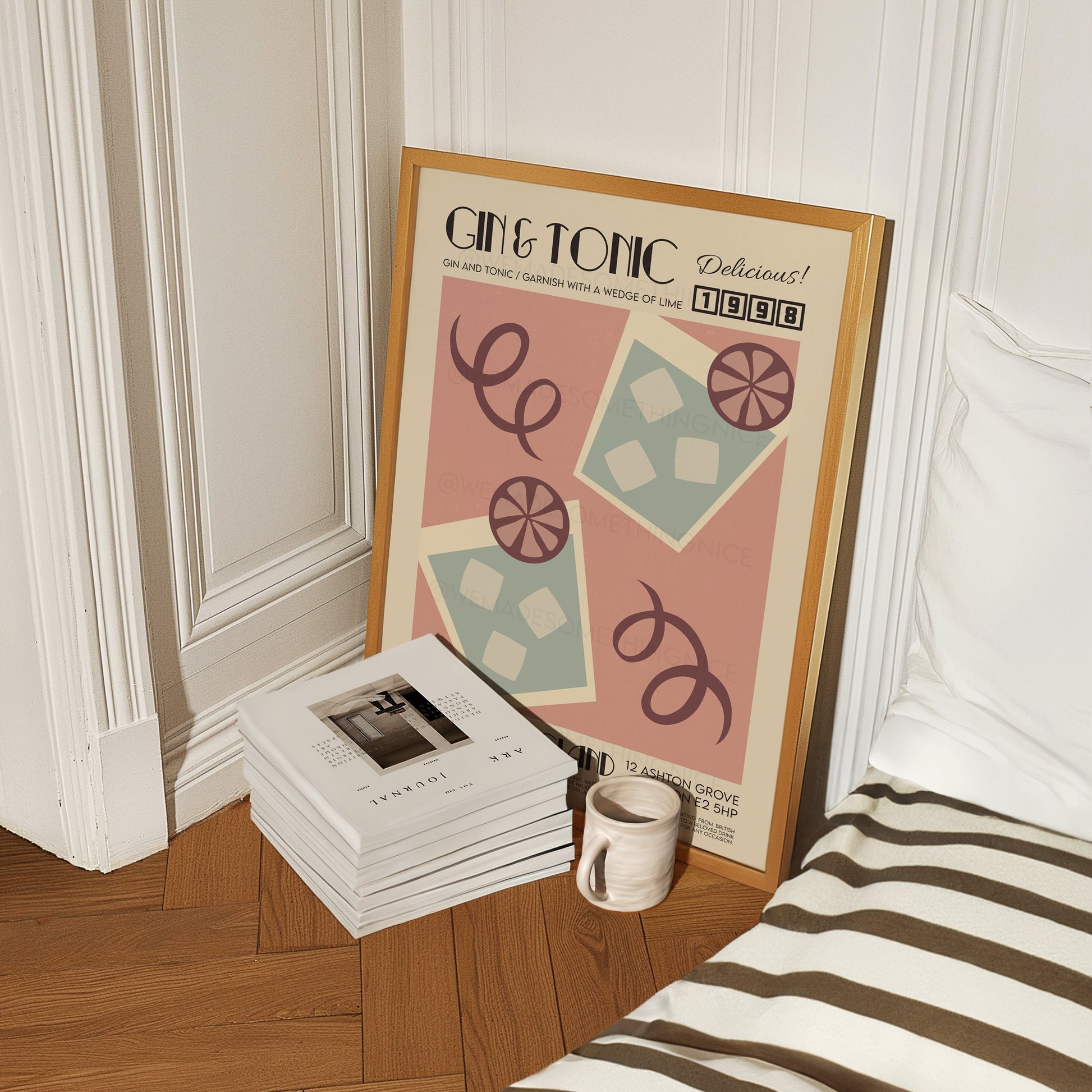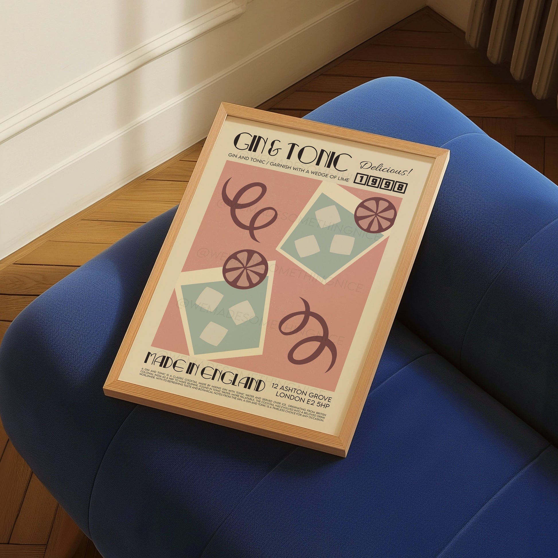 Gin and Tonic Print, Kitchen Art, Kitchen Poster, Kitchen Print, Gin Poster, Kitchen Decor, Bar Art, Cocktail Poster, Mid Century Modern