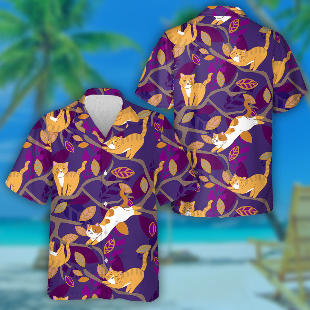 Ginger Red Orange Cat On A Branch Of A Tree Hawaiian Shirt, Hawaiian Shirt Gift, Christmas Gift