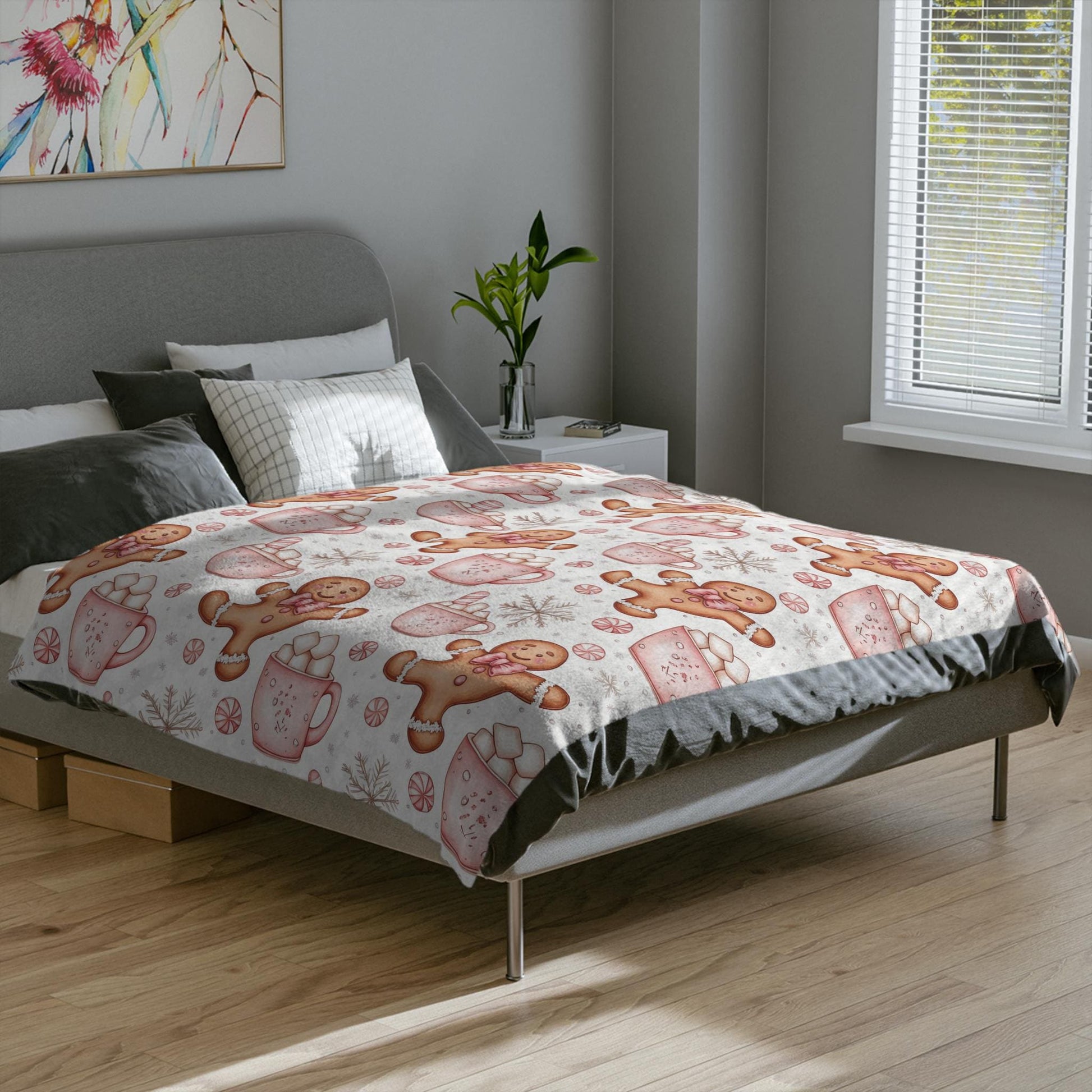 Gingerbread Man Blanket Christmas Coquette Bow Gingerbread Fleece Throw Pink Holiday Home Decor Hot Cocoa Christmas Gift for Family Friends