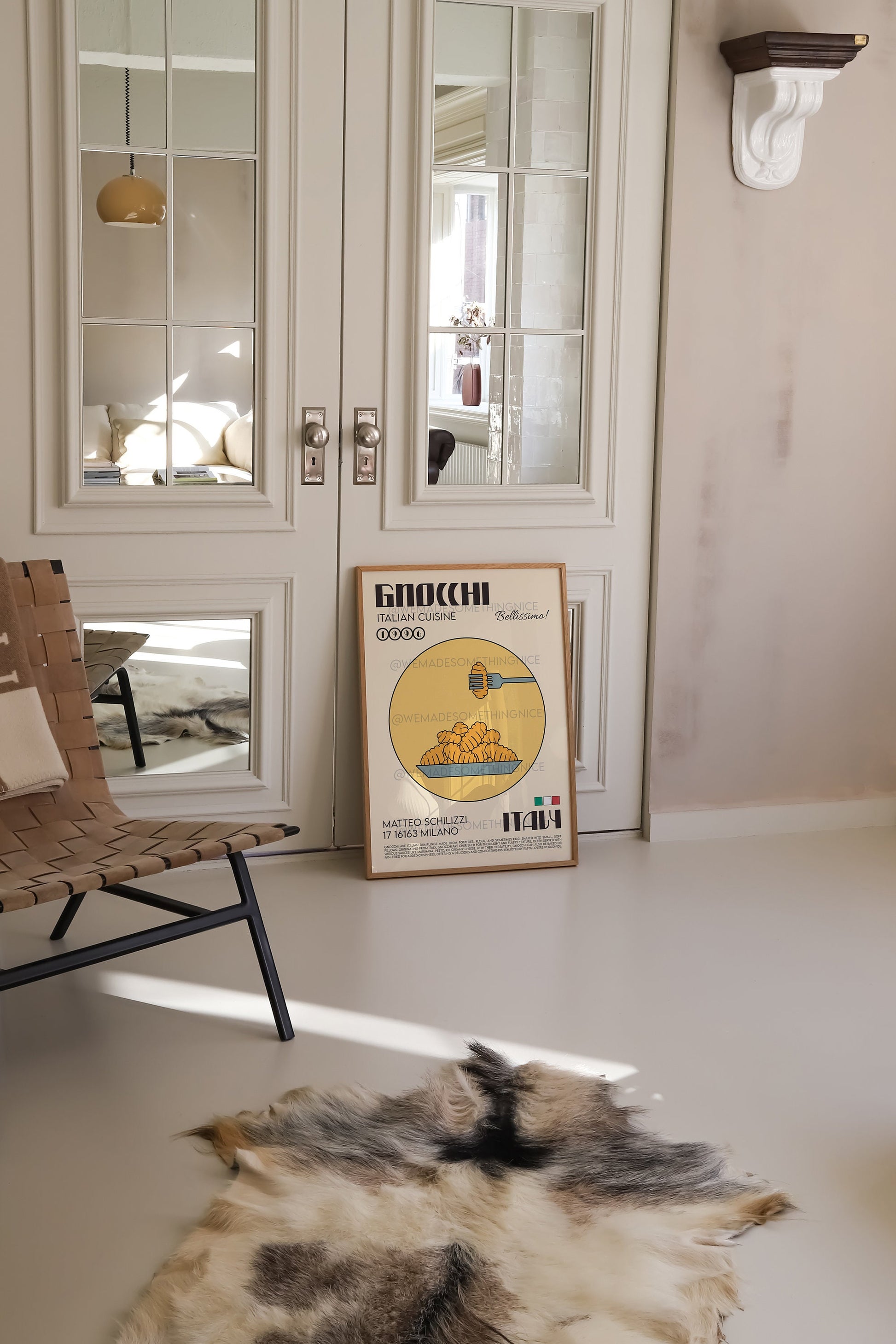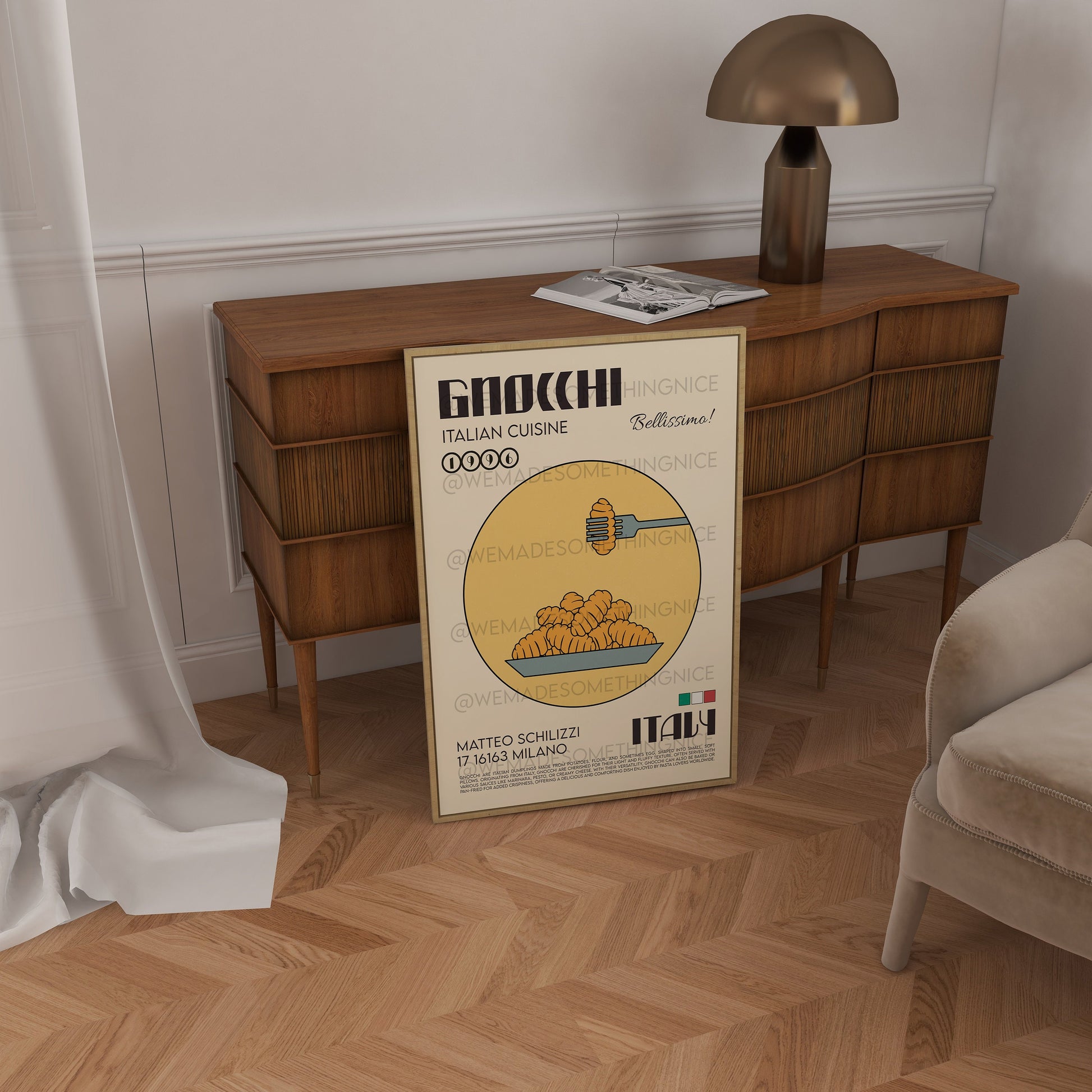 Gnocchi Poster, Pasta Art, Kitchen Poster, Kitchen Print, Food Poster, Modern Kitchen Decor, Illustration, Kitchen Art, Retro Wall Art