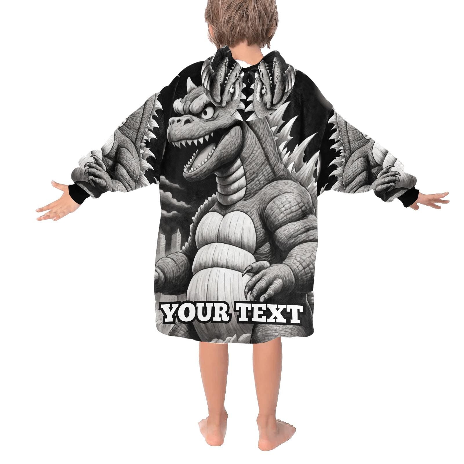 Godzilla Kids Hoodie Blanket Gift Personalized Hooded Blankets Kaiju Gojira