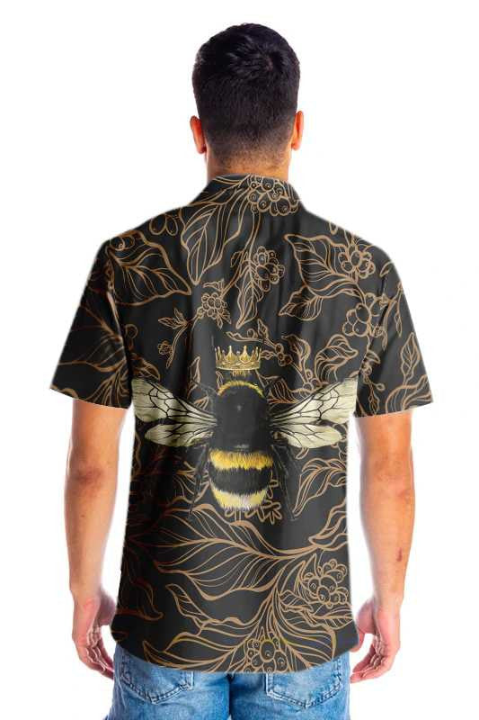 Gold Crown Golden Floral Bee Design Hawaiian Shirt,Hawaiian Shirt Gift, Christmas Gift