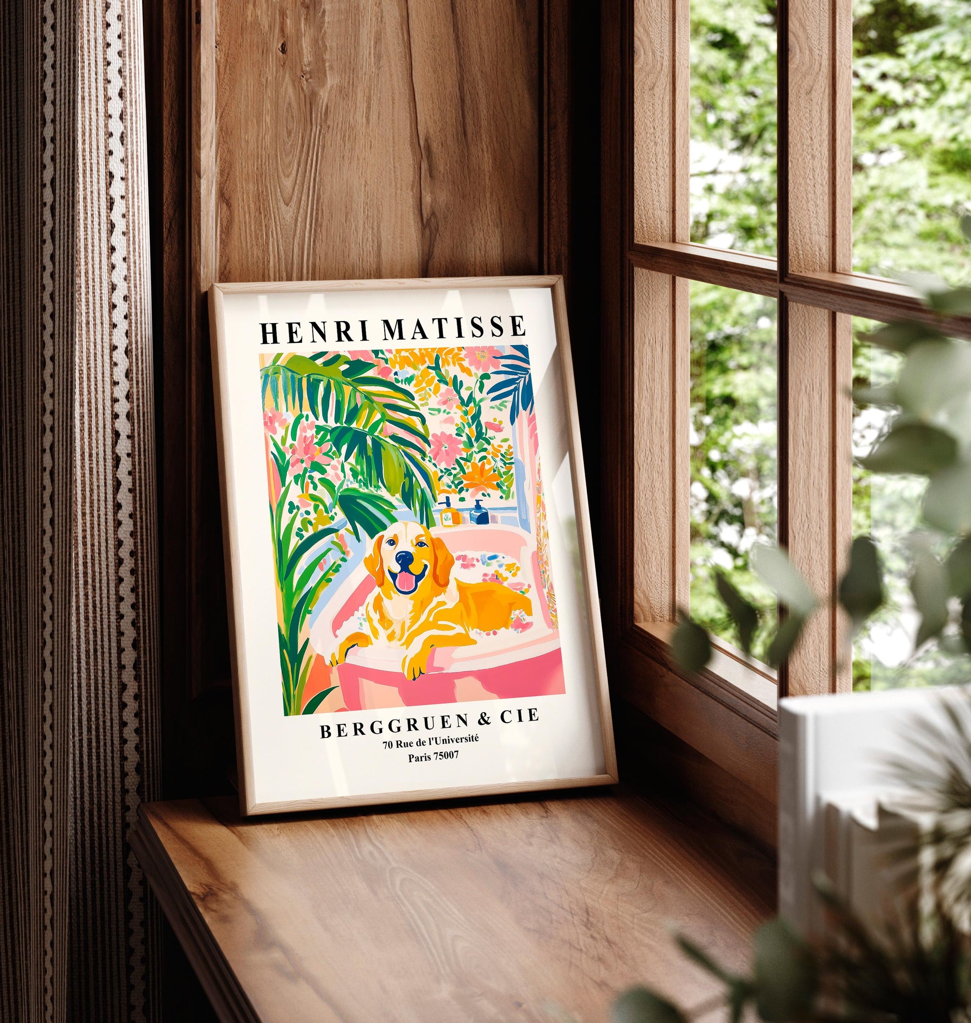 Golden Retriever in Bath Matisse Print: Funny Dog Bathroom Wall Art