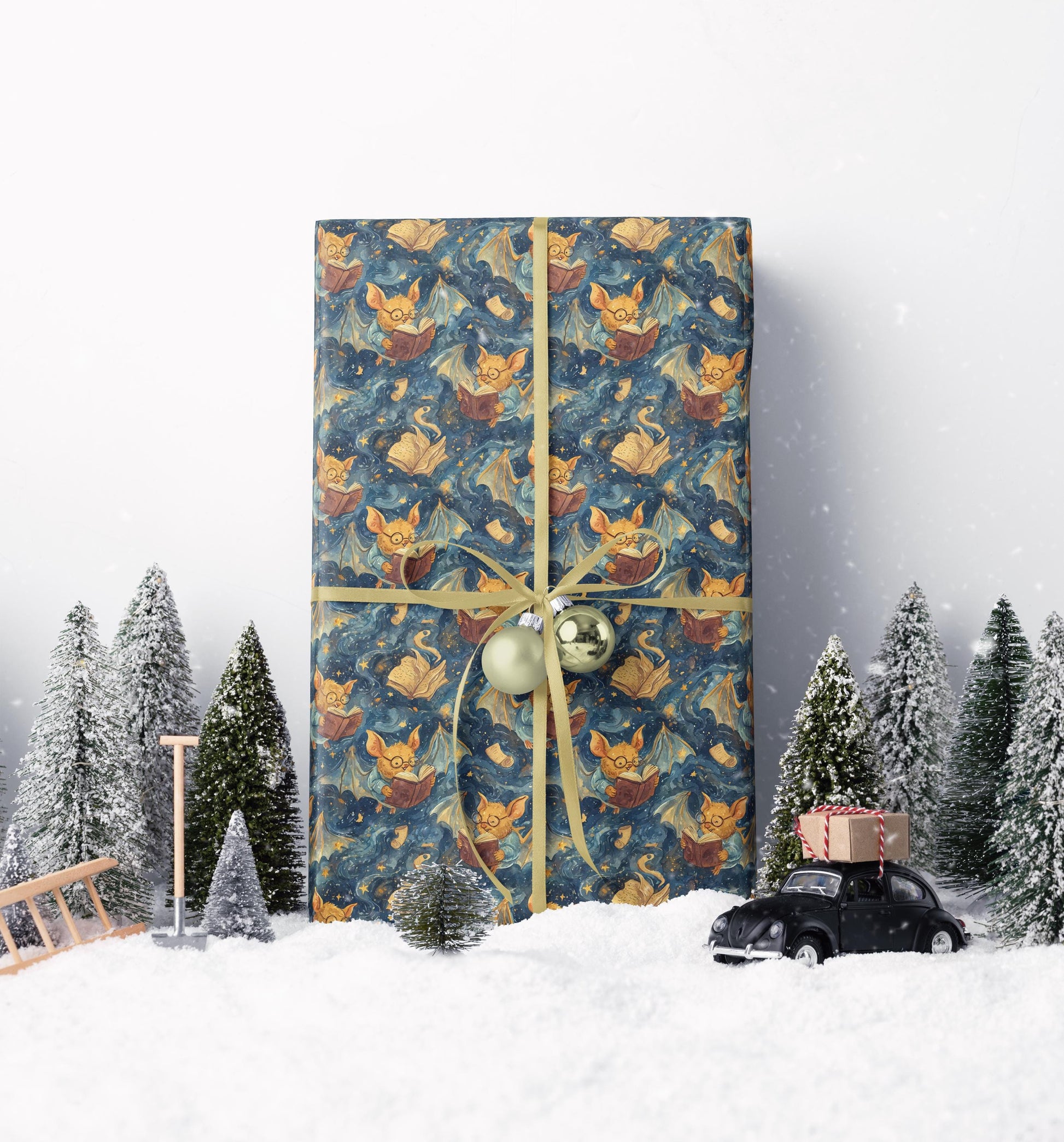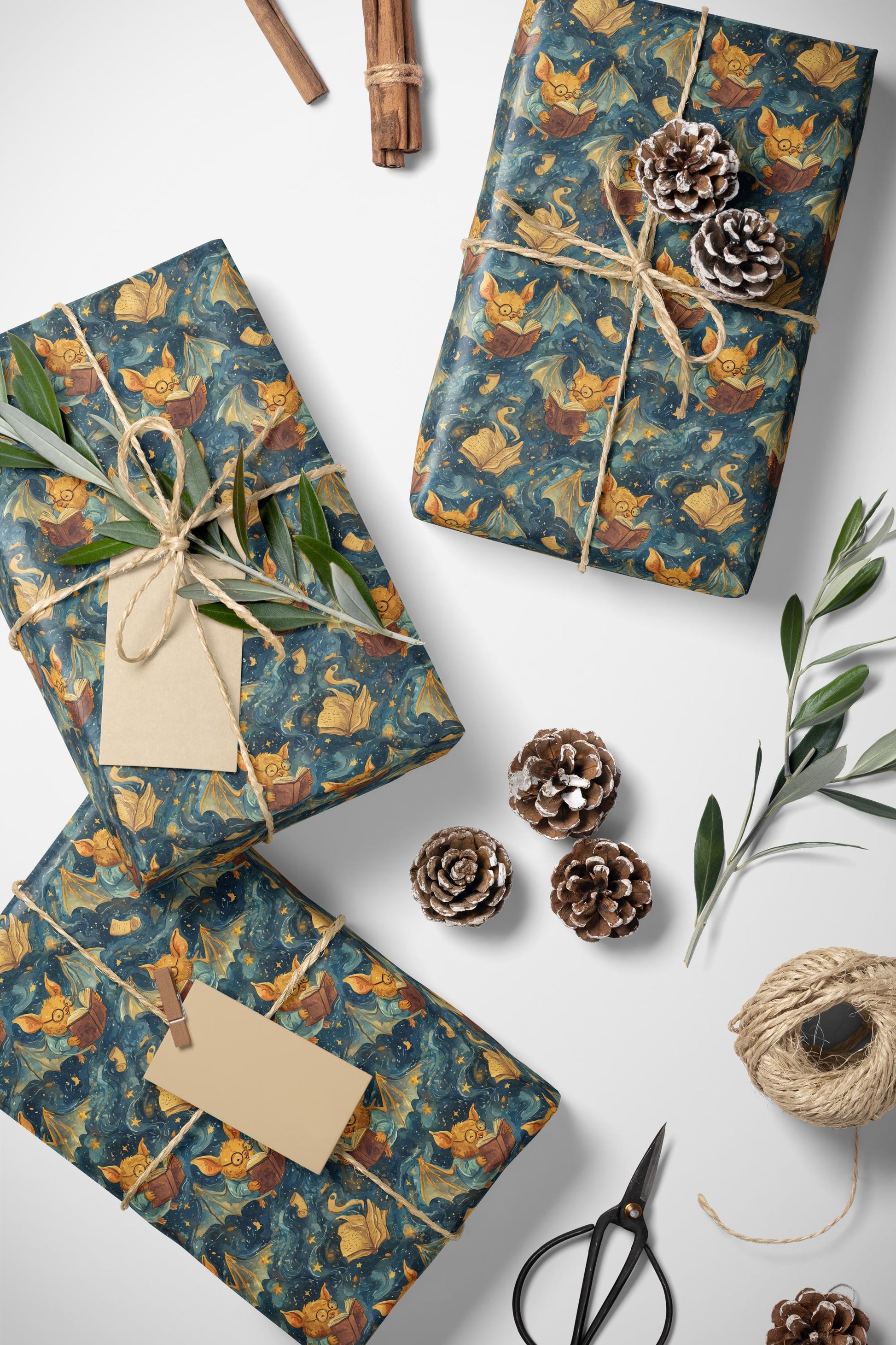 Gothic Bat Wrapping Paper Roll for Halloween, Dark Spooky Gift Wrap for Horror Fans, Haunted Houses, and Scary Parties #7