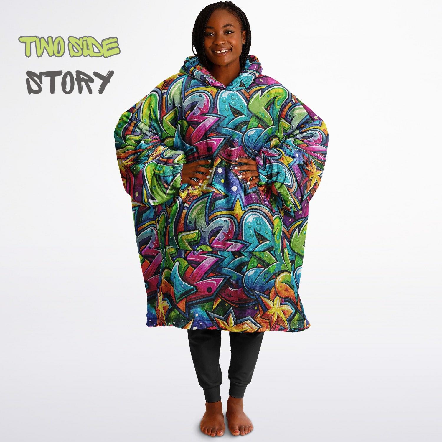 Graffiti Print Reversible Adult Snug Hoodie,Vivid Color Graffiti Oversized Double Sided Hoodie Blanket,Warm Blanket with Sleeves,Unique Gift
