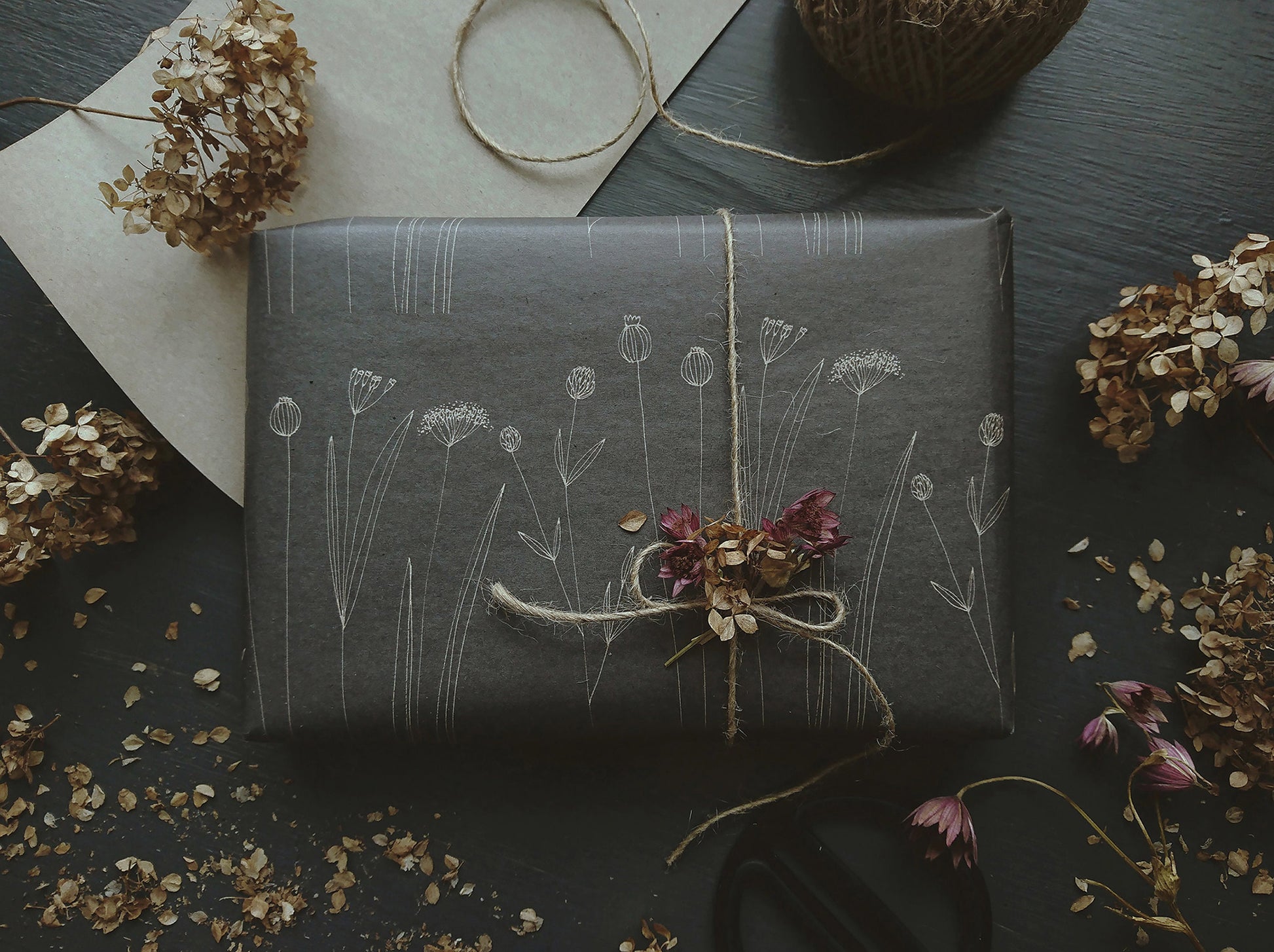 Graphical Wrapping paper,Gift Wrap, Rustic Wrapping, Floral Gift Warp, Wrapping paper, gift paper, floral wrapping paper, recycled wrapping