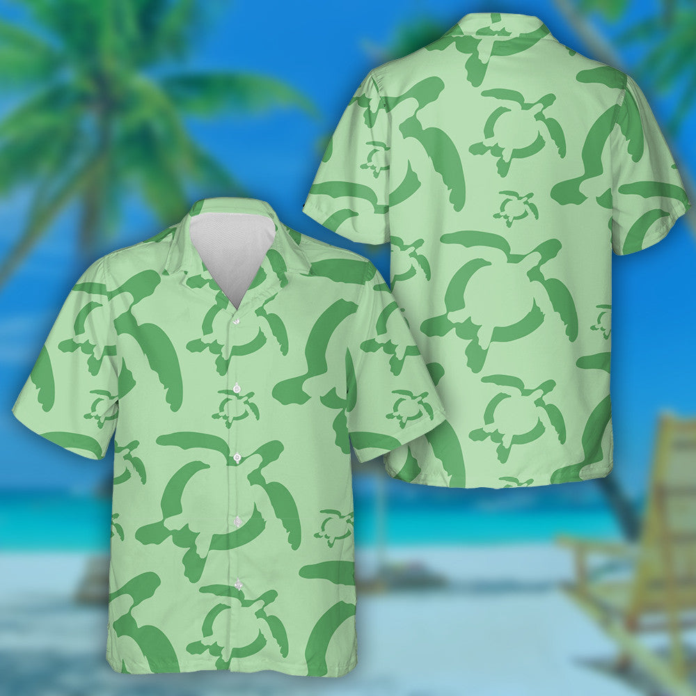 Green Line Sea Turtles On Light Green Hawaiian Shirt, Hawaiian Shirt Gift, Christmas Gift