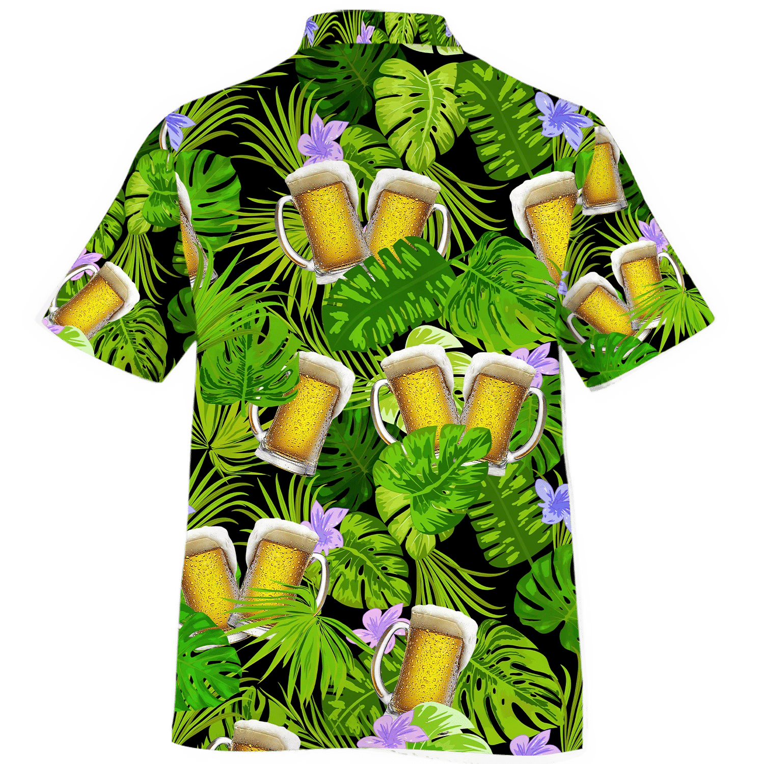Green Palm Leave And Beer Watercolor Design Hawaiian Shirt, Hawaiian Shirt Gift, Christmas Gift