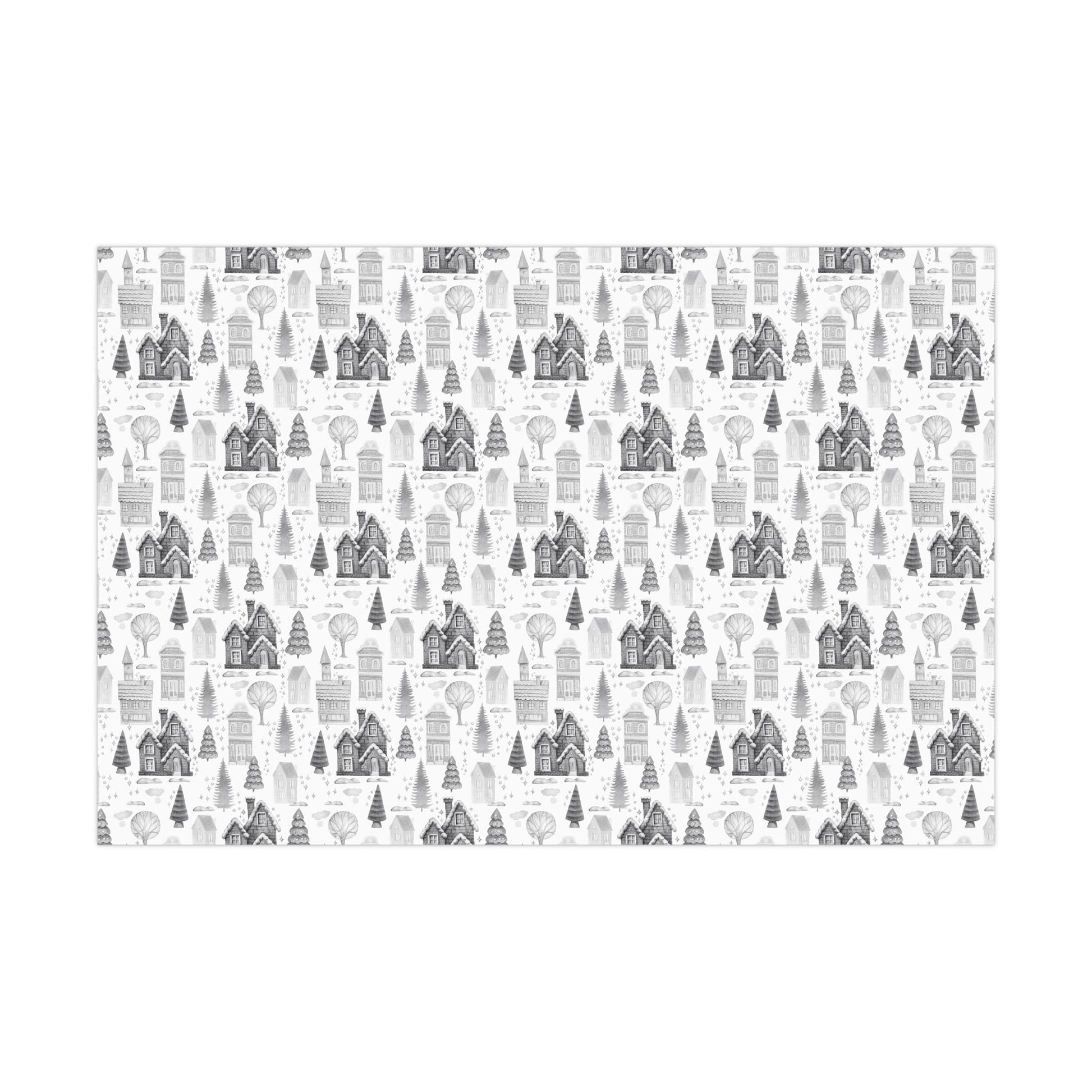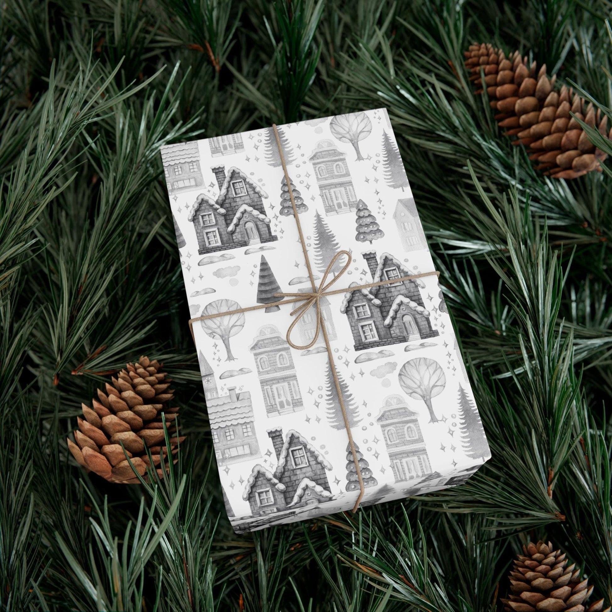 Grey Cottage Gift Wrap Papers - Retro Christmas Gift wrapping - Nostalgic Gift Wrapping paper