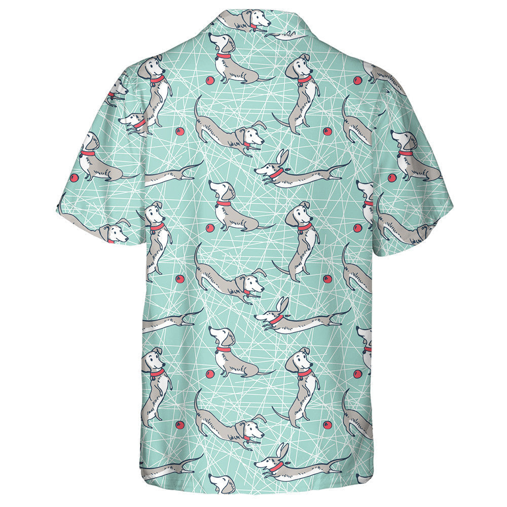 Grey Dachshunds And Red Ball On Line Hawaiian Shirt Hawaiian Shirt Gift, Christmas Gift