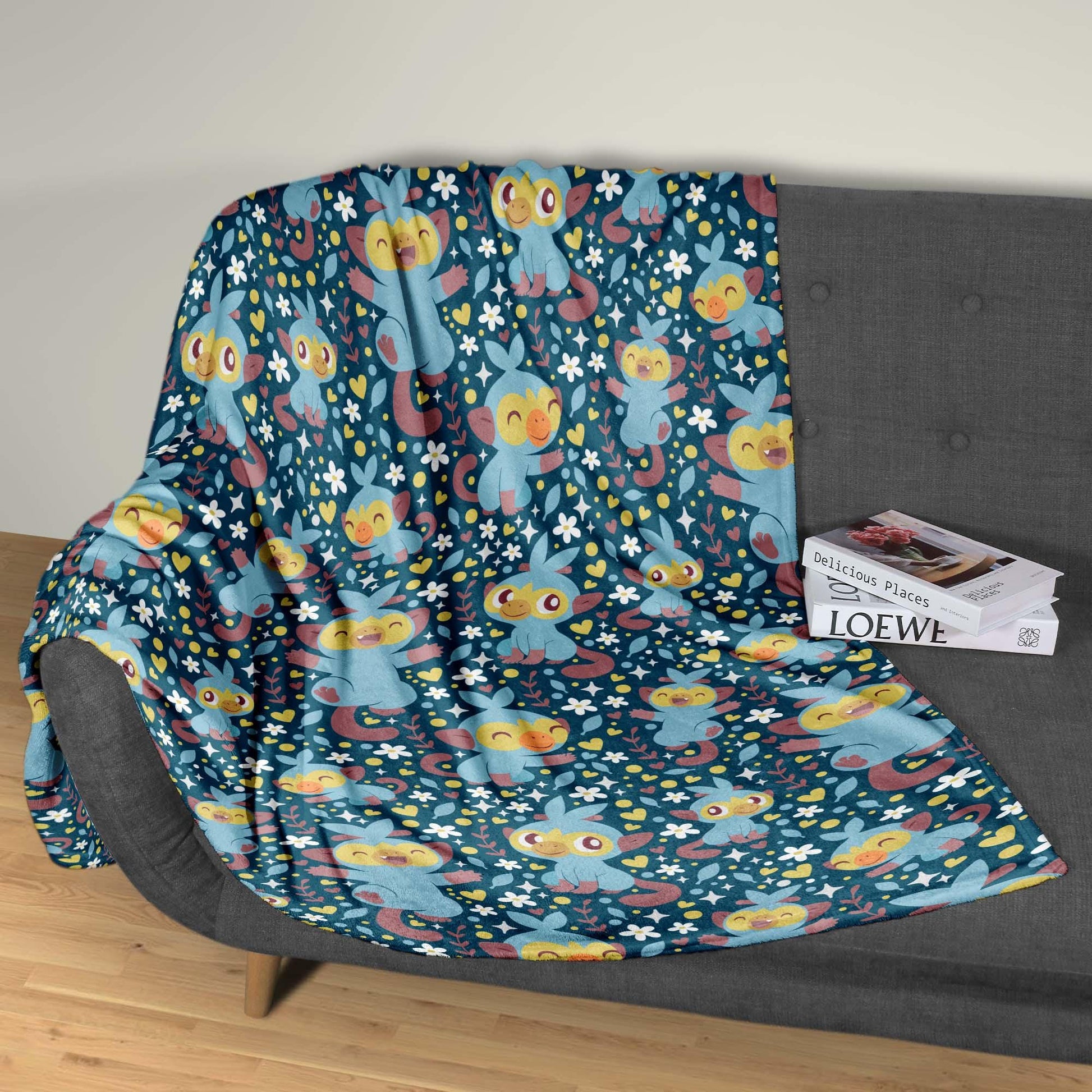 Grookey Fleece Blanket, Cute Kawaii Throw for Kids and Adults, Soft Cozy Cotton Bedding, Monkey Home Decor Gift, Grookey Blanket Gifts