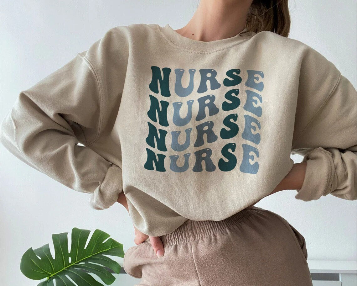 Groovy Blue Nurse Sweatshirt, Retro Nurse Shirts, Graduation Gift, Nursing School, Nurses Week Appreciation, RN, Unisex Sweatshirt, nurse