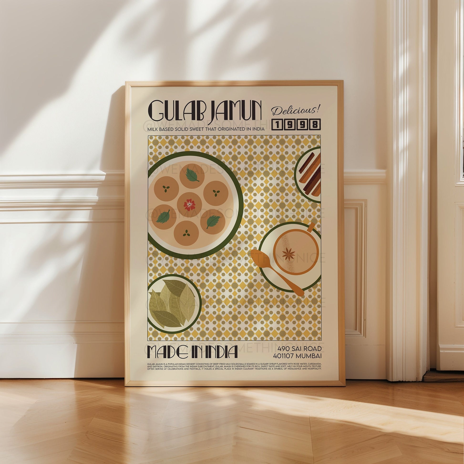 Gulab Jamun Poster, Food Print, Modern Kitchen Decor, Travel Poster, Kitchen Poster, Exhibition Poster Retro Wall Art, India Print