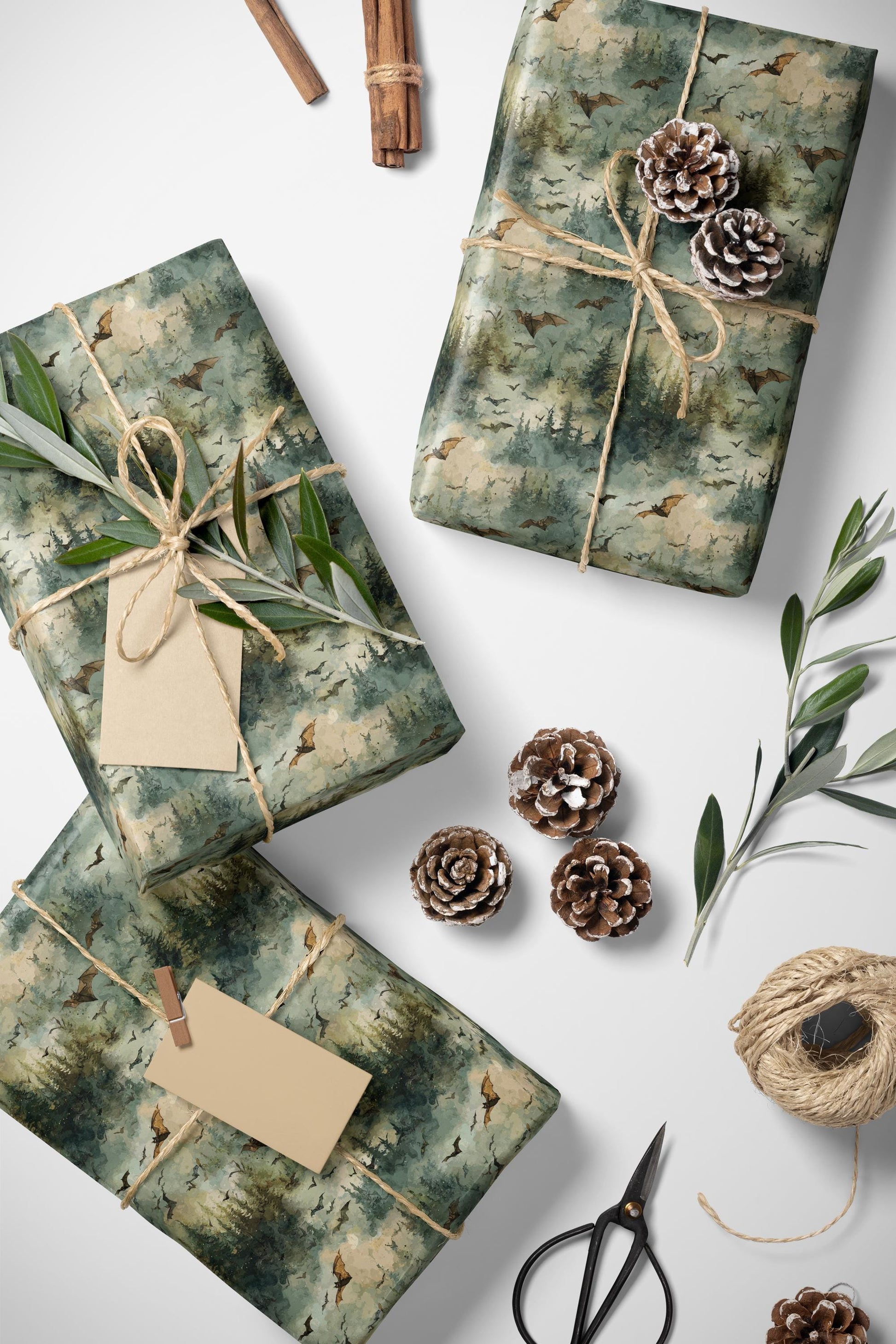 Halloween Bat Wrapping Paper Roll with Spooky Flying Bat Print, Dark Aesthetic Gift Wrap for October Parties and Haunted Gifts #1