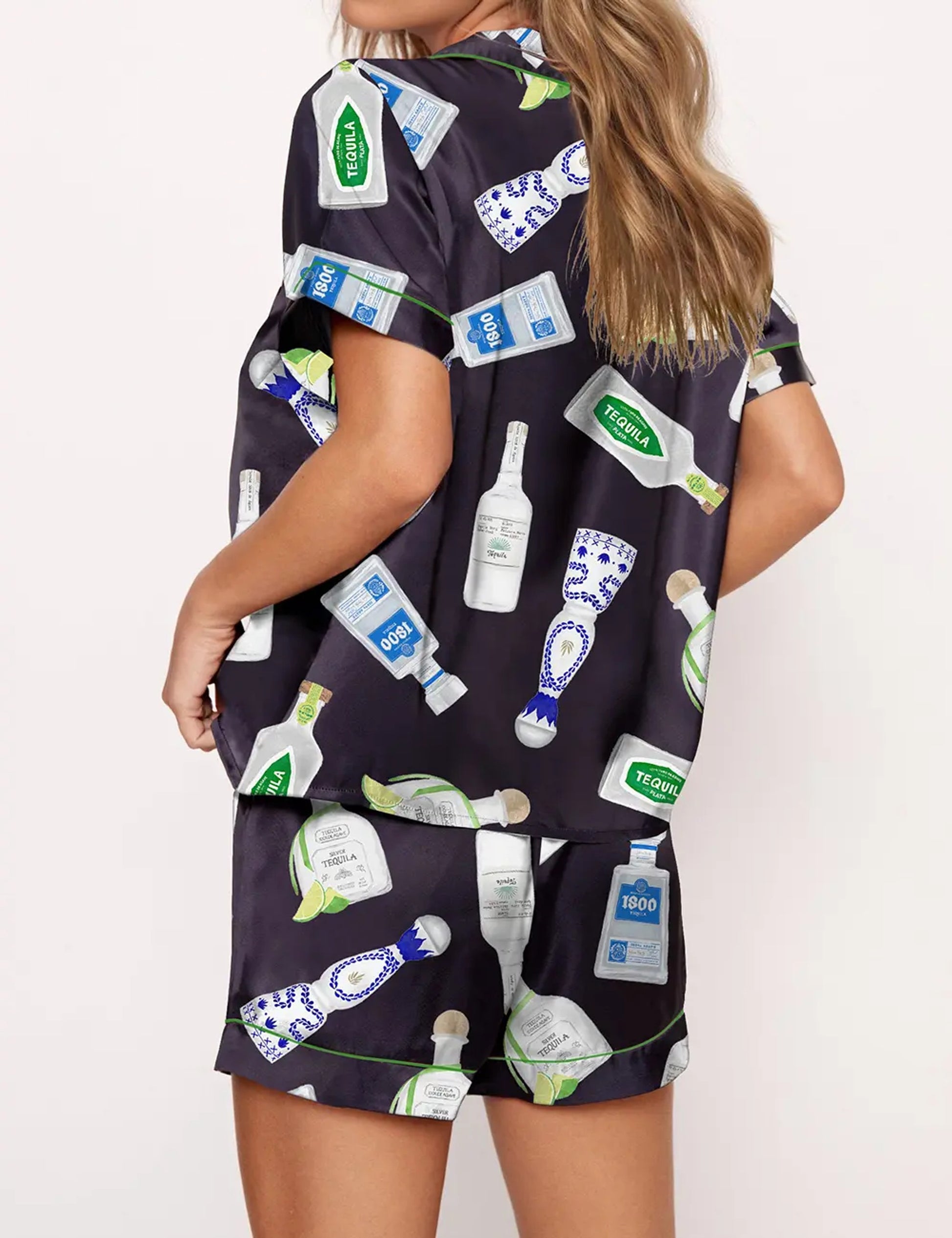 Tequila Bottle Satin Pajama Set For Women