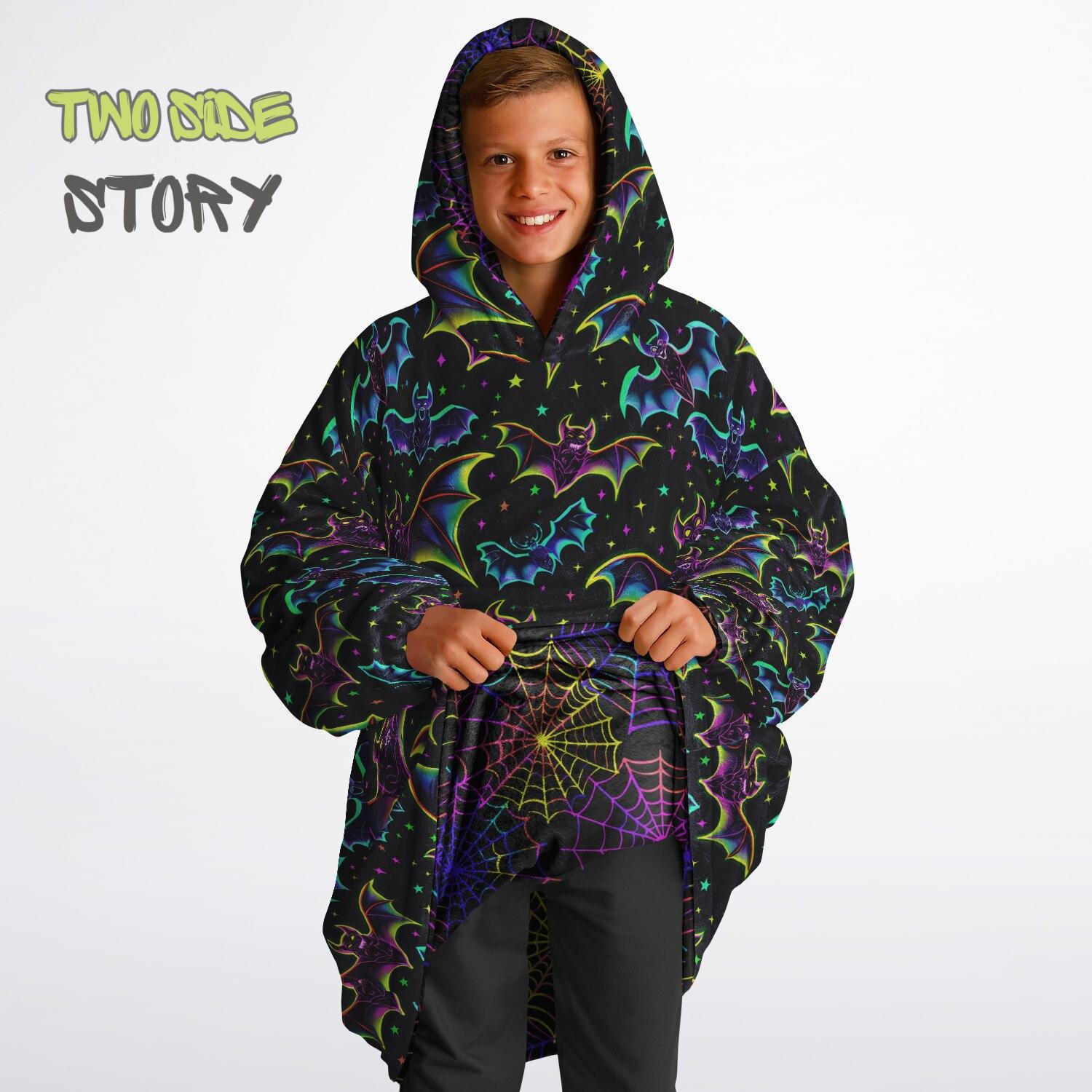 Halloween Print Neon Cobweb Bats Reversible Kids Snug Hoodie,Oversized Double Sided Youth Hoodie Blanket,Warm Blanket Sleeves,Unique Gift