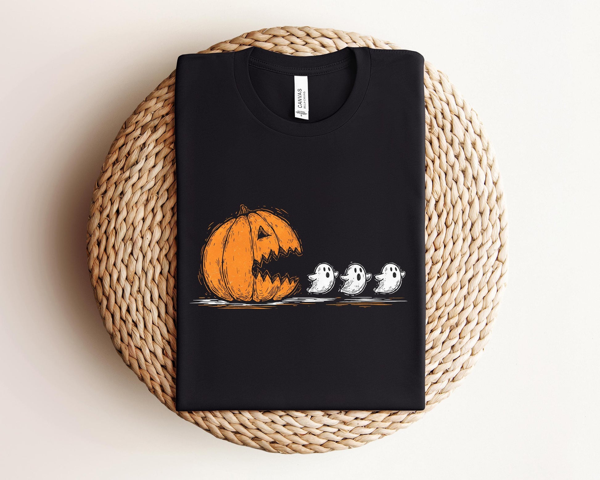 Halloween Pumpkin Eat Ghost Shirt, Funny Halloween Shirt, Halloween Gamer Gift, Halloween Party Tee, Pumpkin Pac Man Shirt, Spooky Ghost Tee