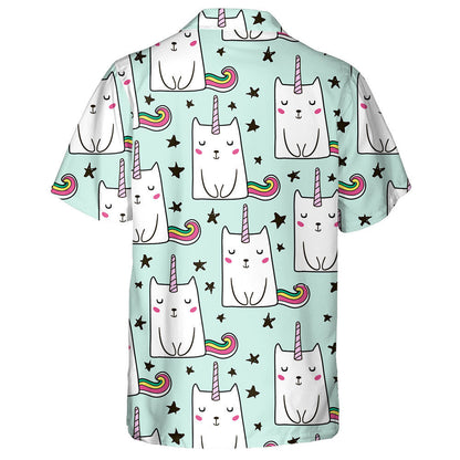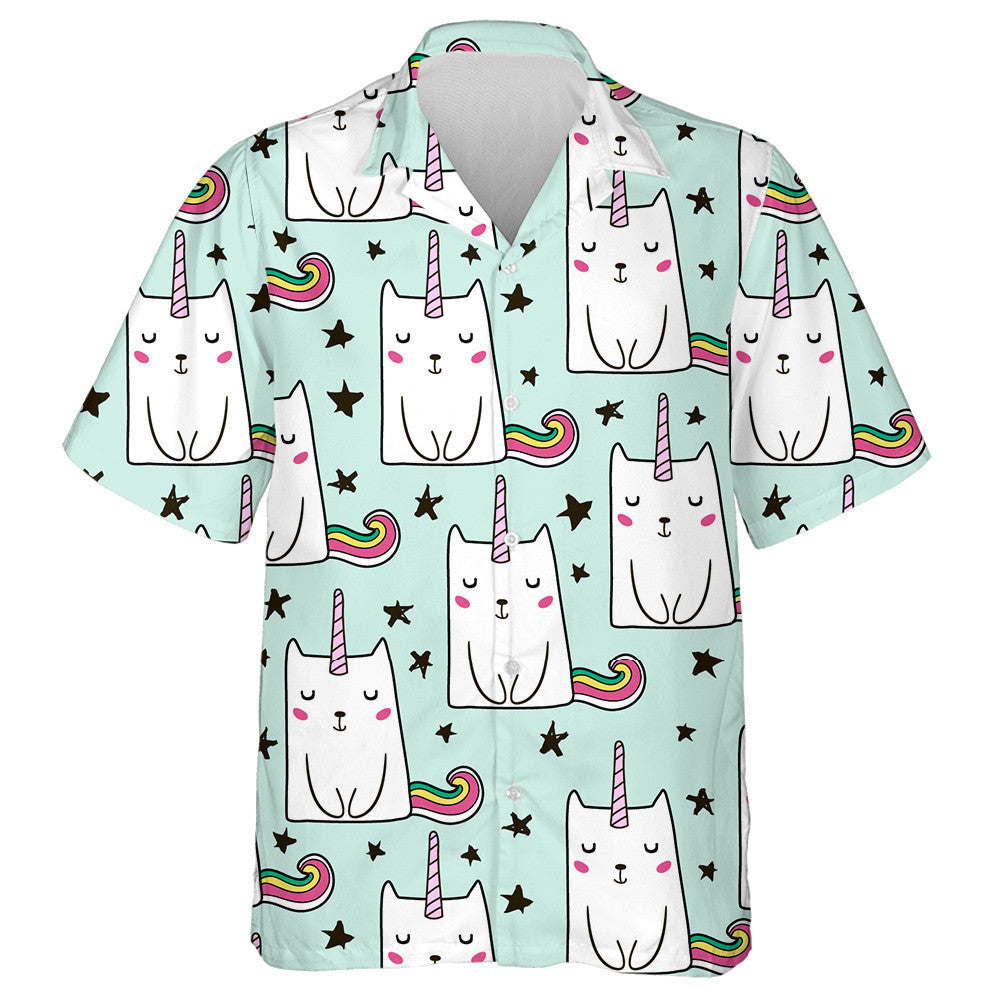 Hand Drawn Cute Unicorn Cat And Black Star Hawaiian Shirt, Hawaiian Shirt Gift, Christmas Gift