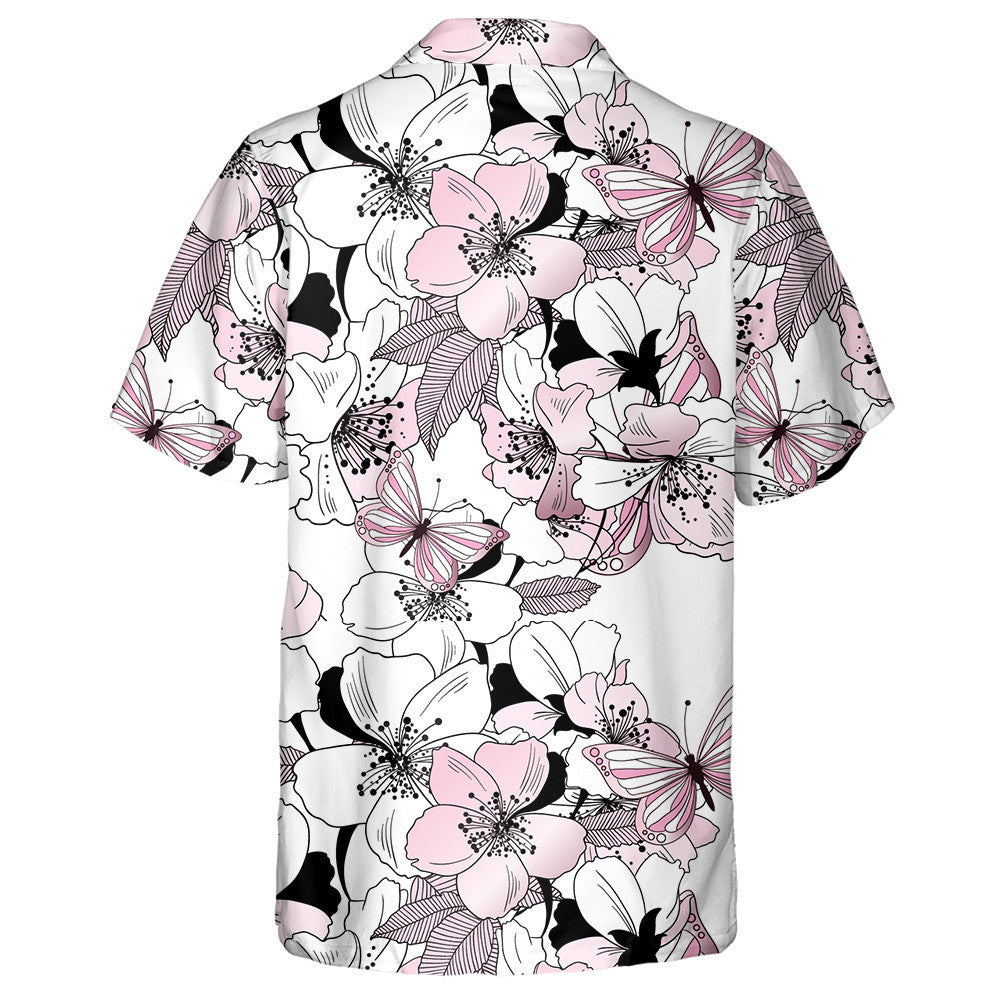 Hand Drawn Flowers Of Cherry And Butterflies Hawaiian Shirt, Hawaiian Shirt Gift, Christmas Gift