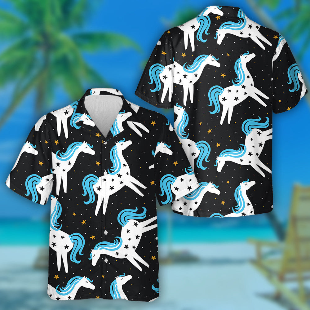 Hand Drawn Horses With Animals And Stars Hawaiian Shirt, Hawaiian Shirt Gift, Christmas Gift