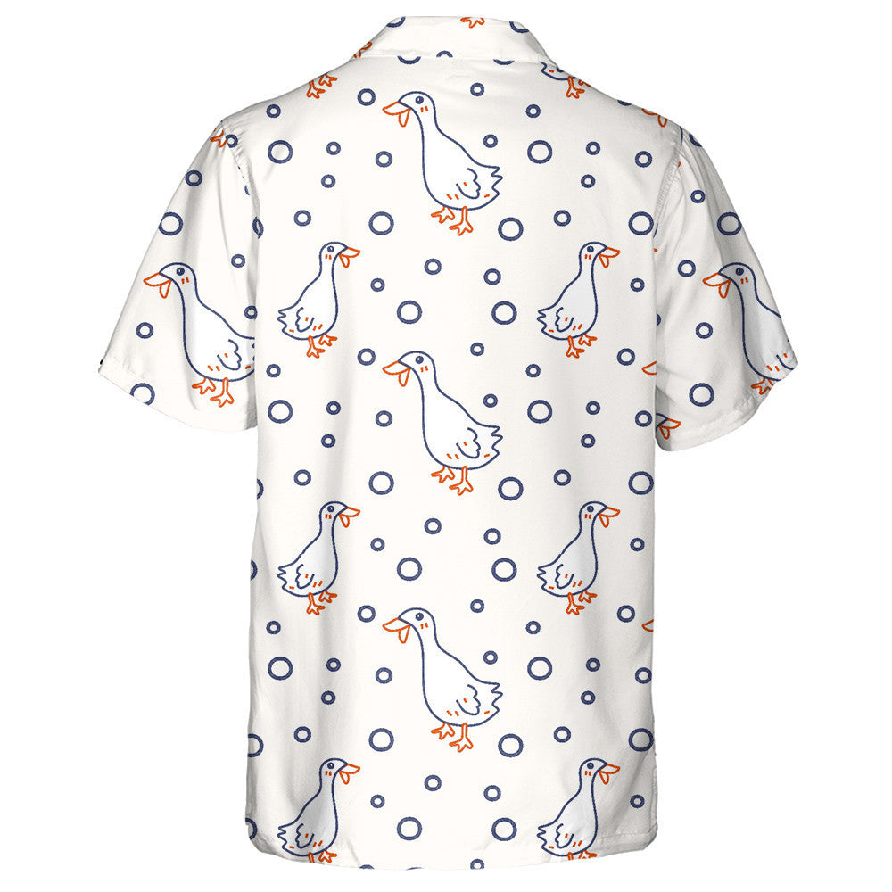 Hand Drawn Little Duck Blue And Orange Line Hawaiian Shirt, Hawaiian Shirt Gift, Christmas Gift