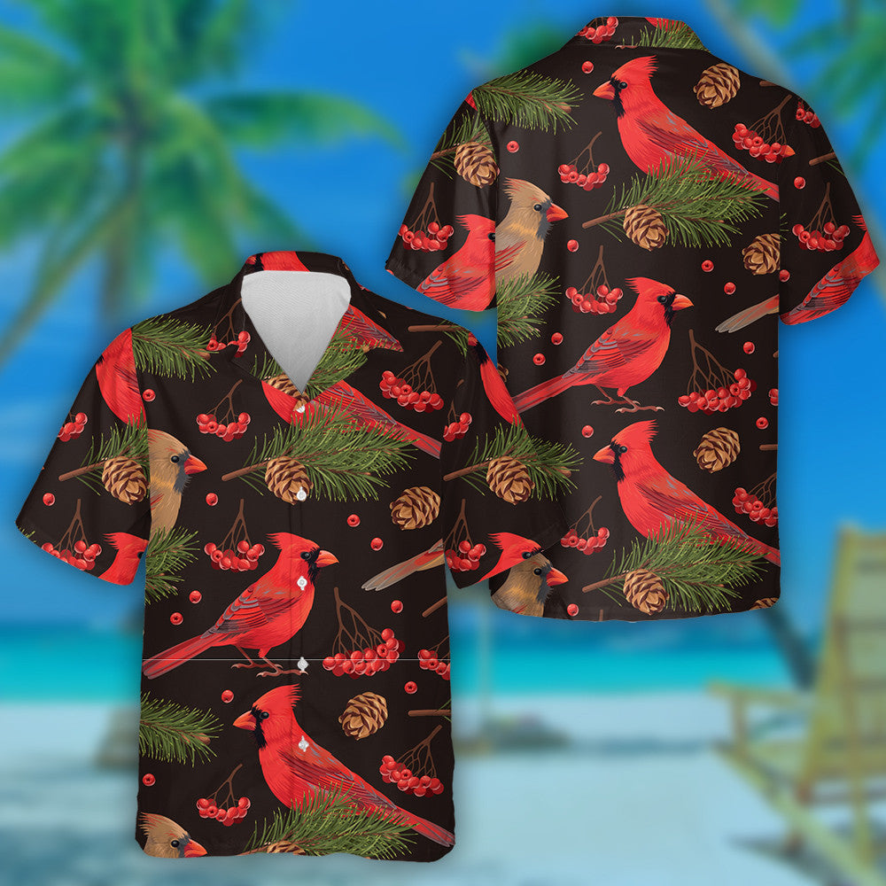 Hand Drawn Red Cardinal Bird And Spruce Hawaiian Shirt, Hawaiian Shirt Gift, Christmas Gift