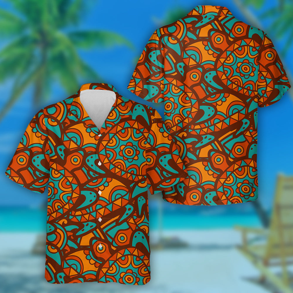Hand Drawn Tribal Blue And Orange Background Hawaiian Shirt, Hawaiian Shirt Gift, Christmas Gift